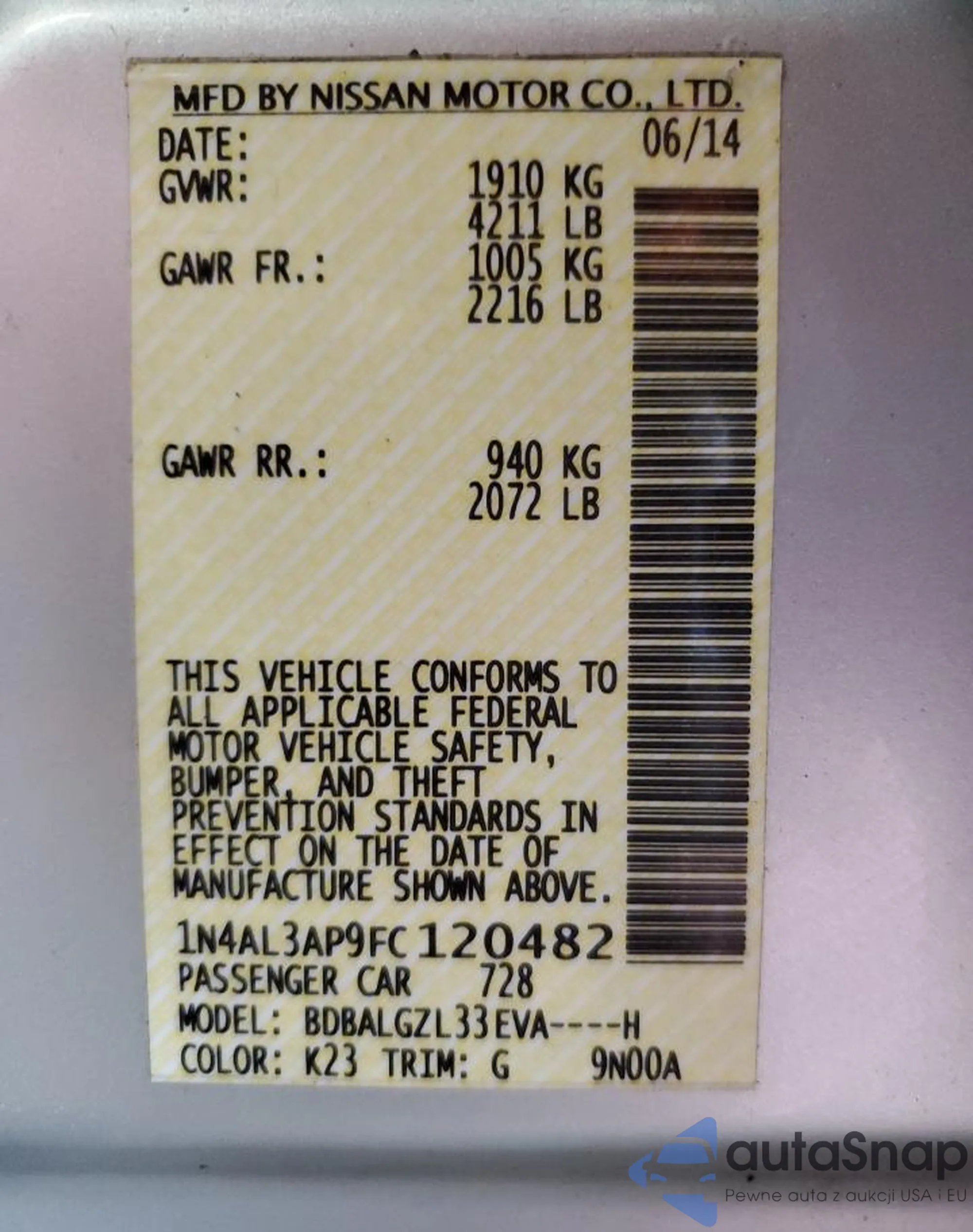 VIN: 1N4AL3AP9FC120482