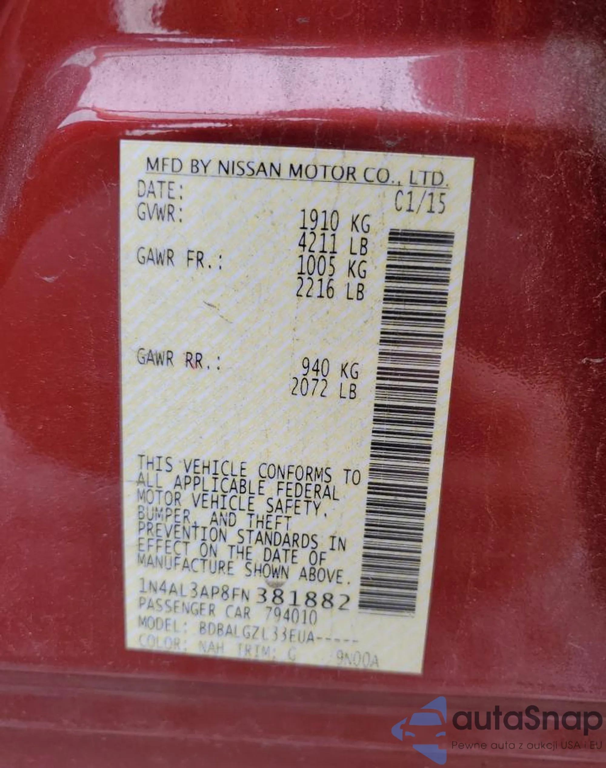 VIN: 1N4AL3AP8FN381882