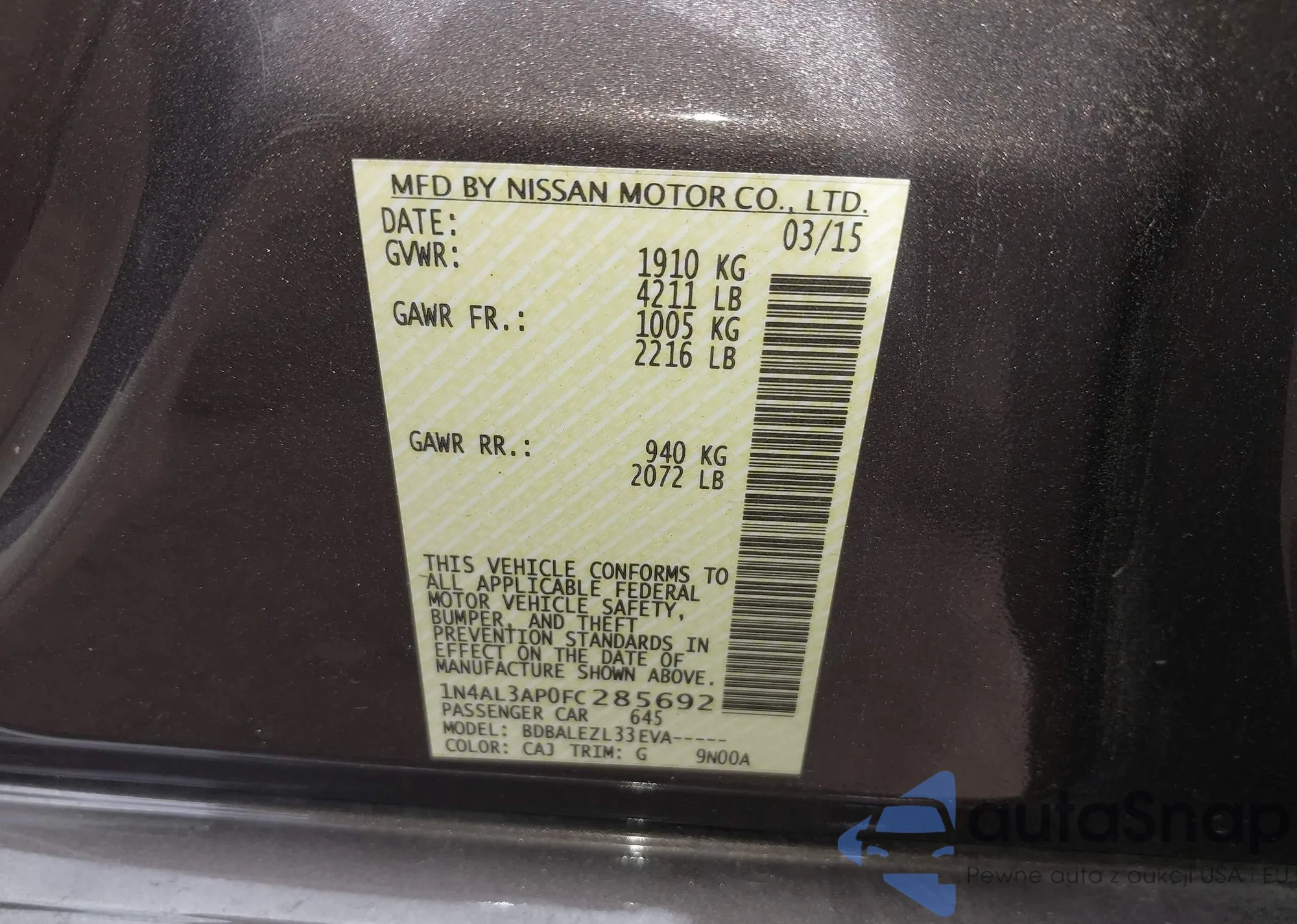 VIN: 1N4AL3AP0FC285692