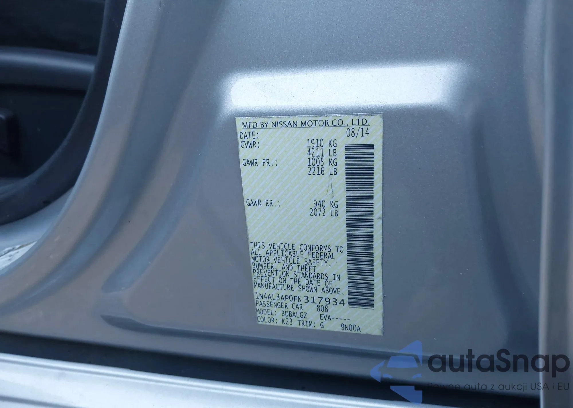 VIN: 1N4AL3AP0FN317934
