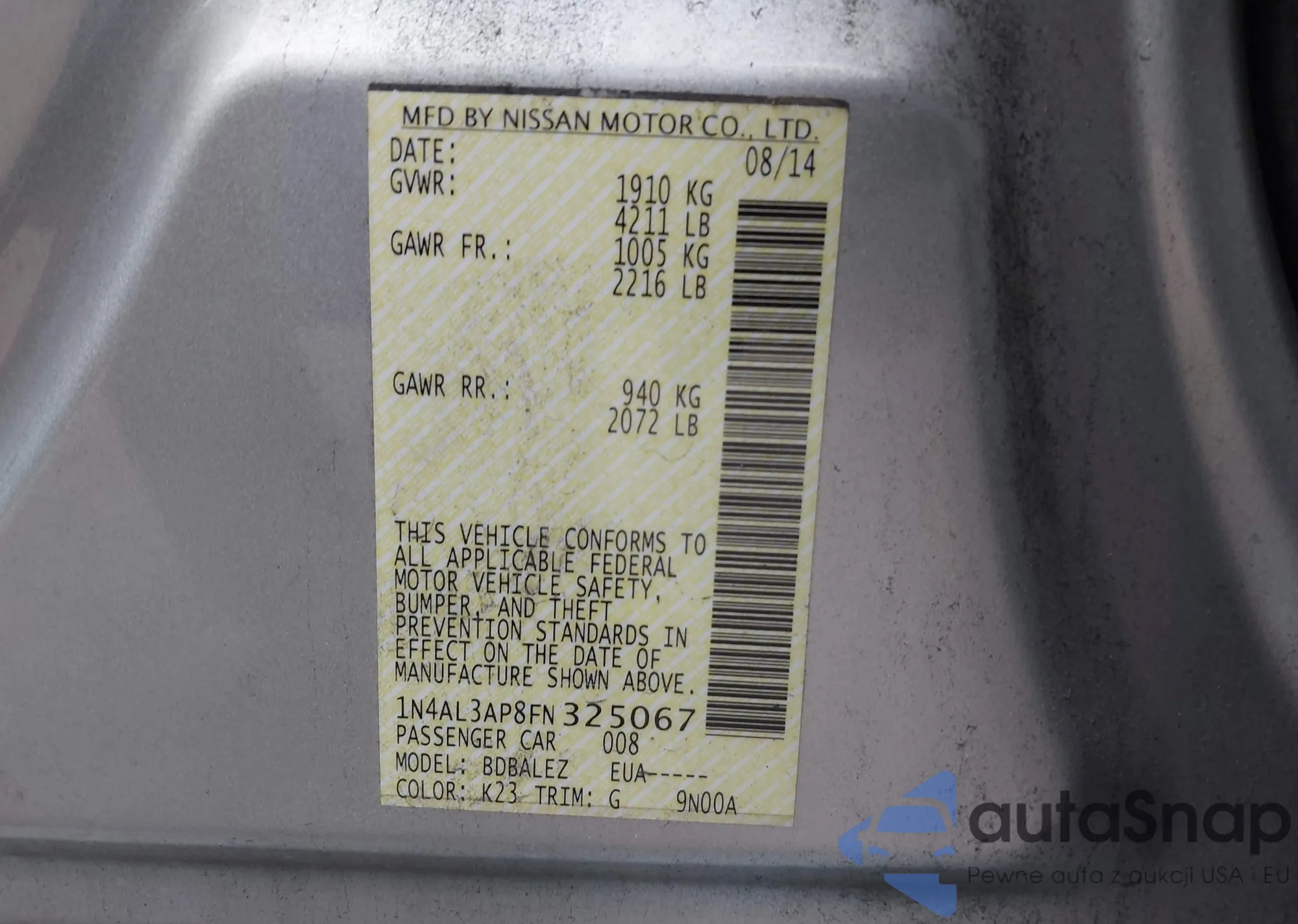 VIN: 1N4AL3AP8FN325067