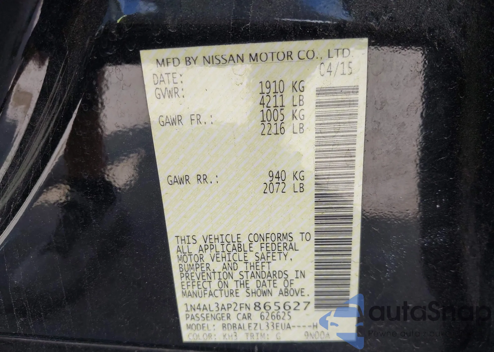VIN: 1N4AL3AP2FN865627