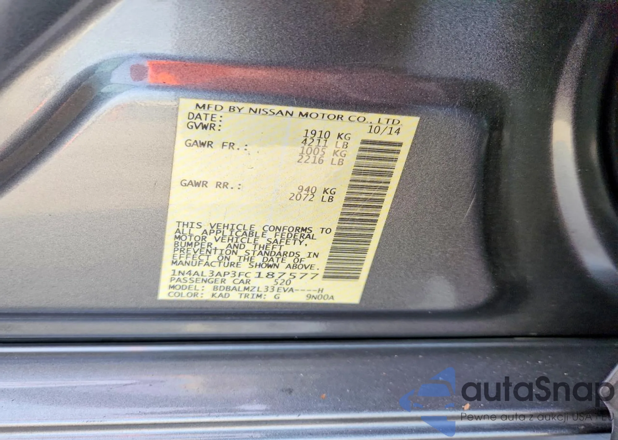 Nissan Altima 2015 – Vehicle History (Sold at COPART)