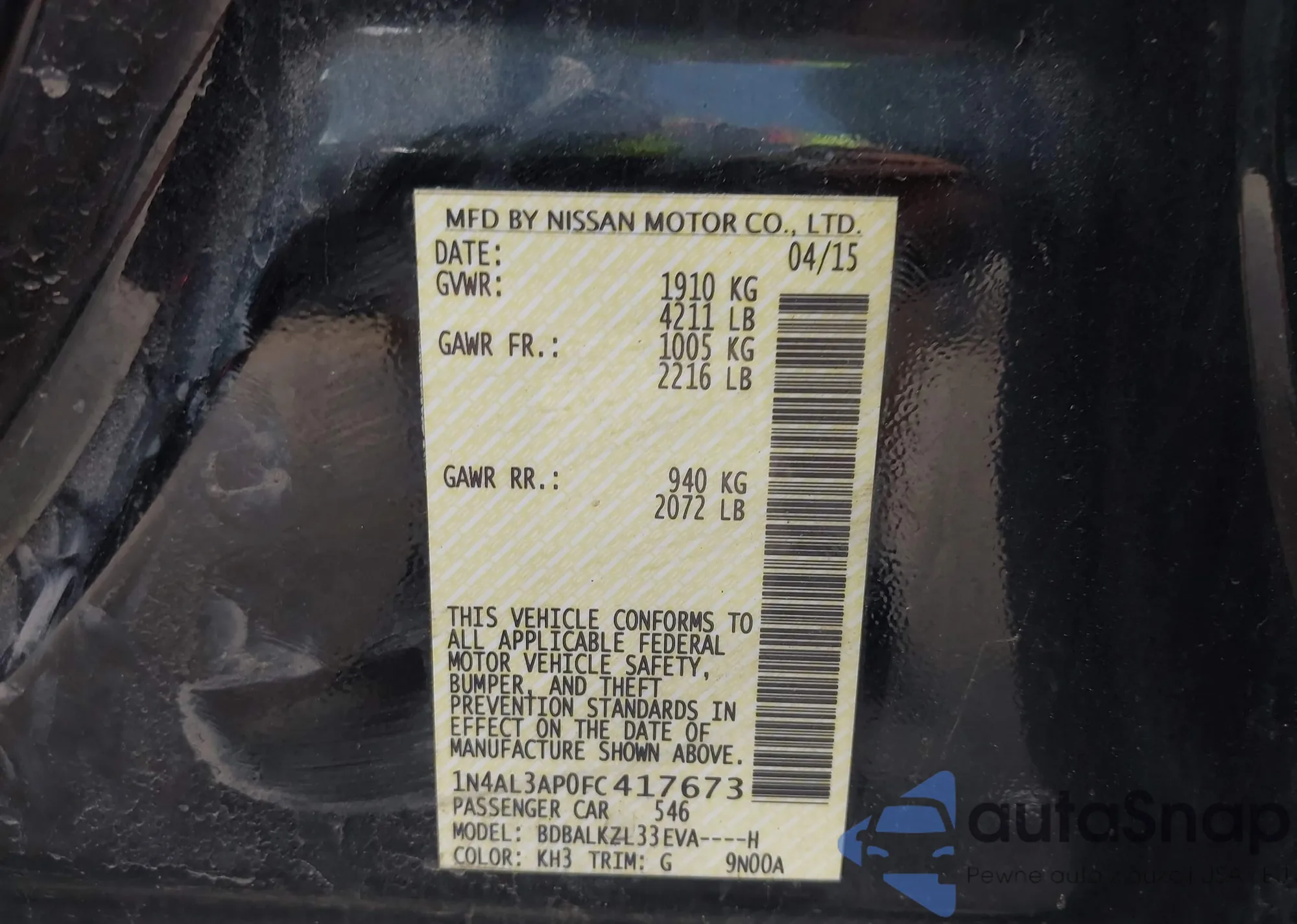 VIN: 1N4AL3AP0FC417673