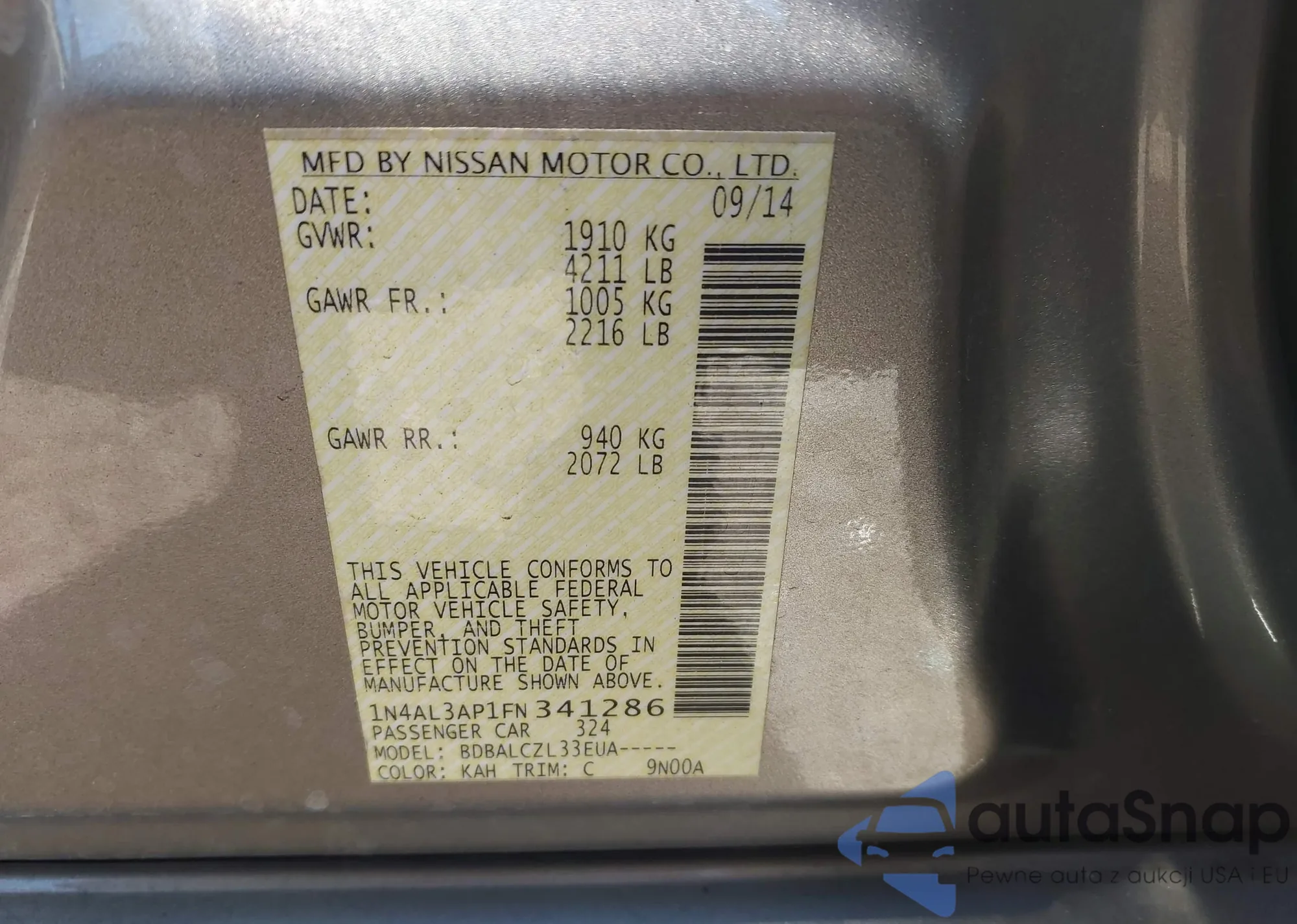 VIN: 1N4AL3AP1FN341286
