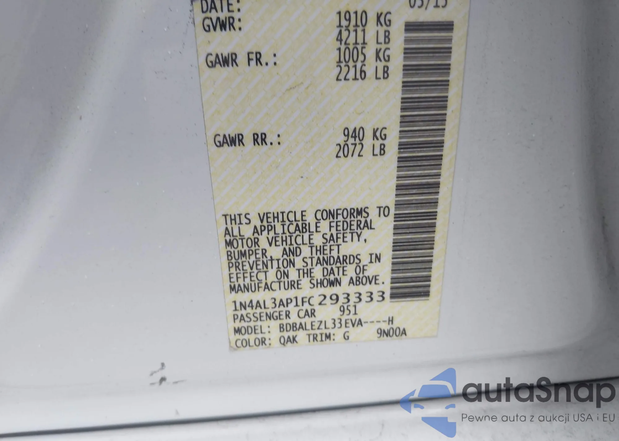 VIN: 1N4AL3AP1FC293333