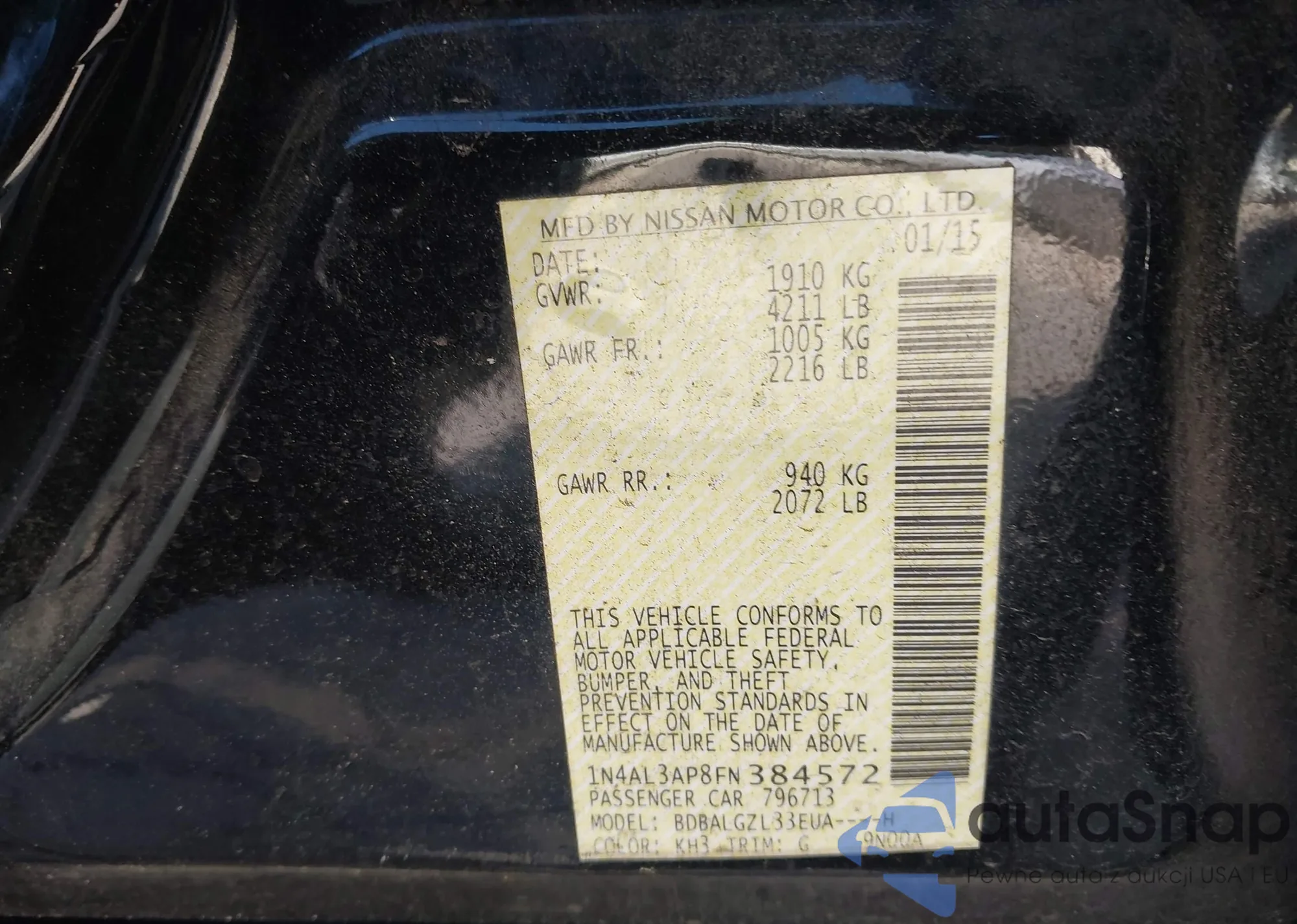 VIN: 1N4AL3AP8FN384572