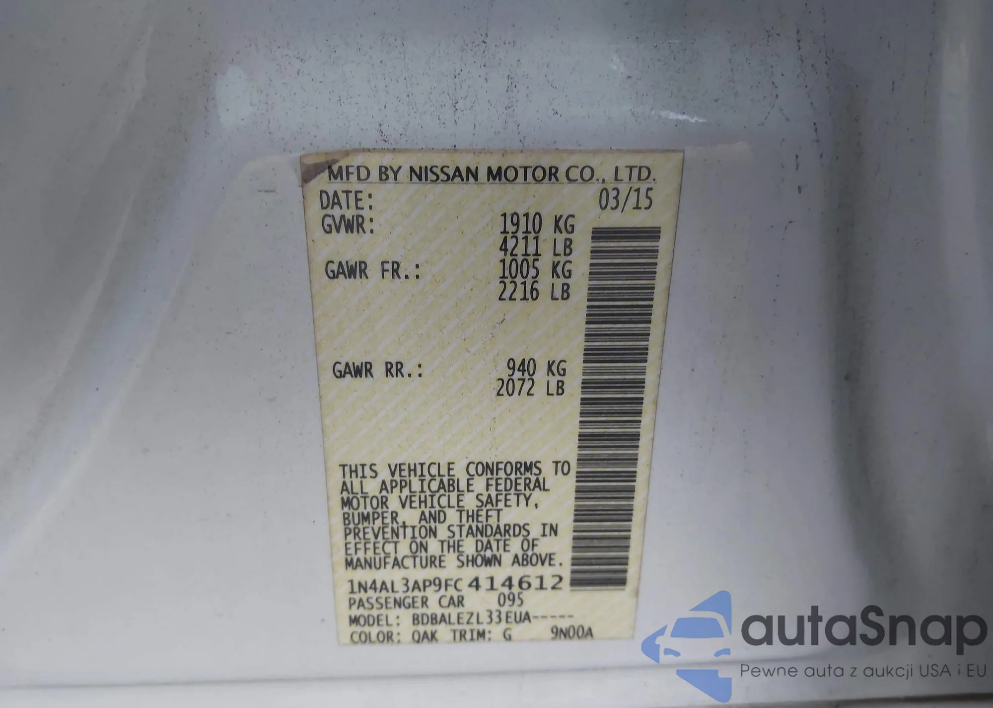 VIN: 1N4AL3AP9FC414612