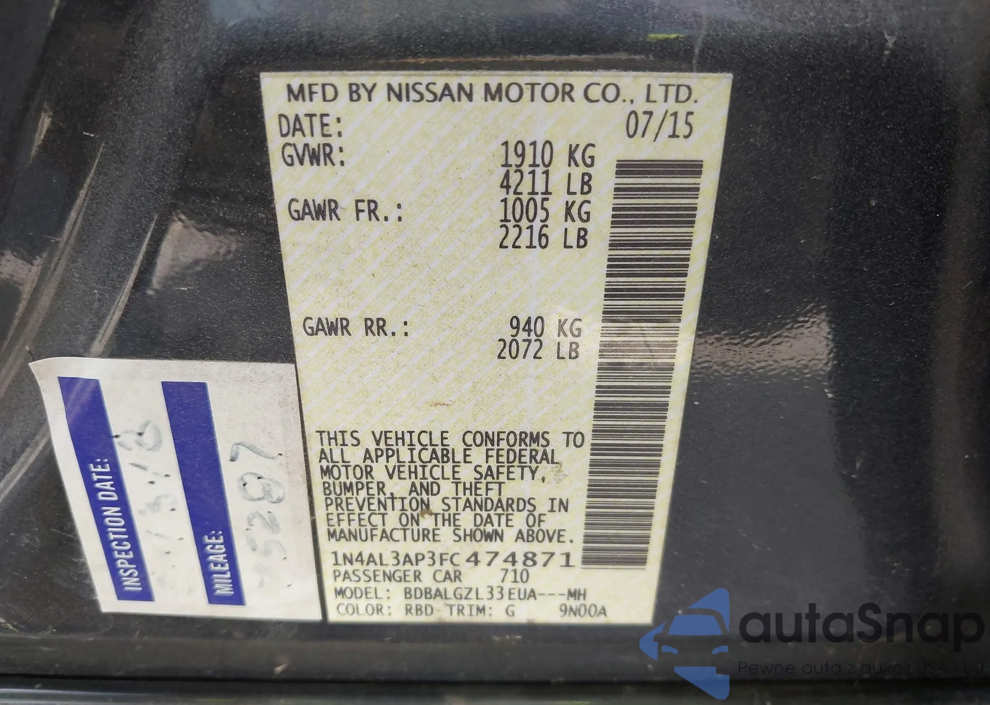 VIN: 1N4AL3AP3FC474871