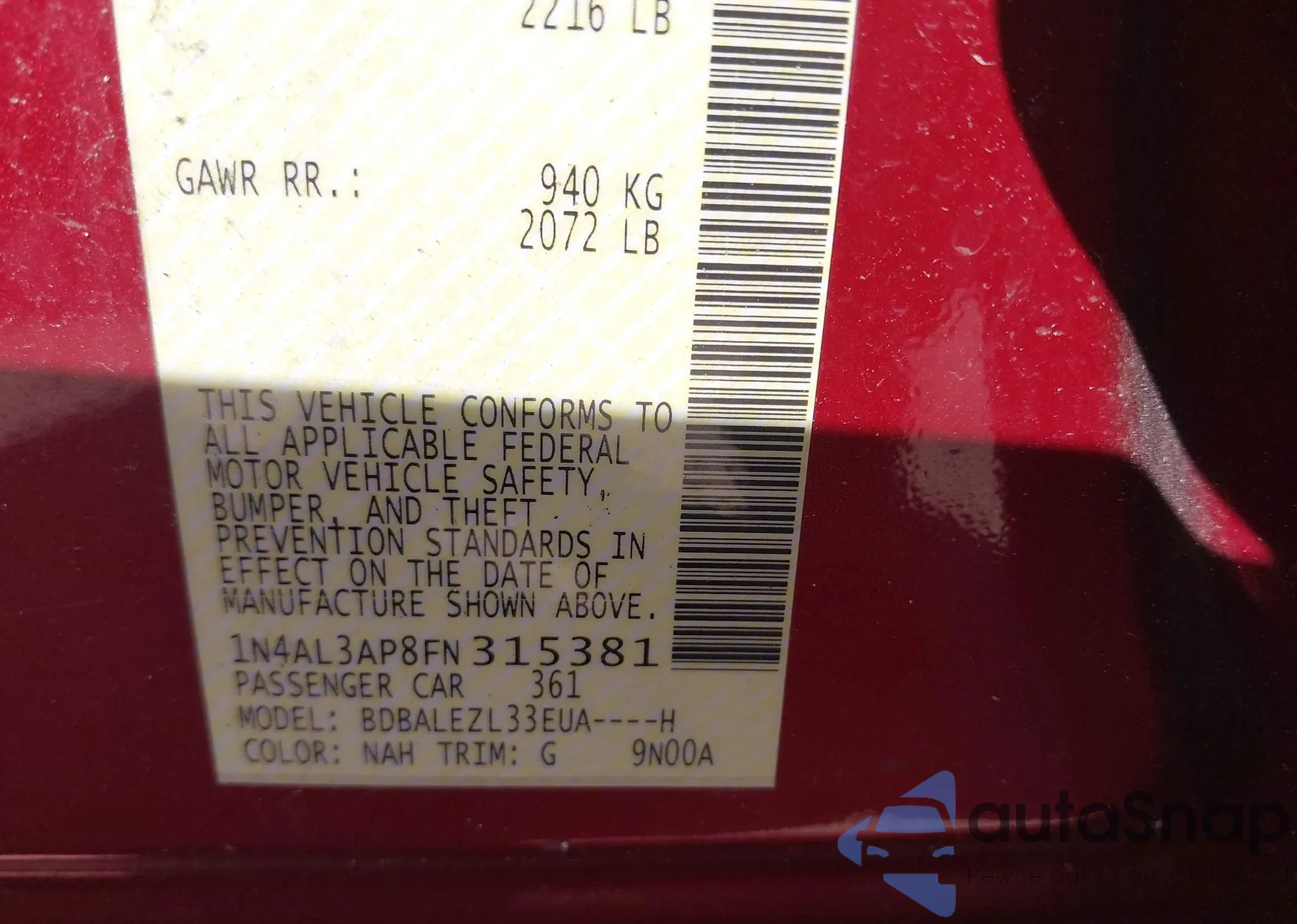 VIN: 1N4AL3AP8FN315381