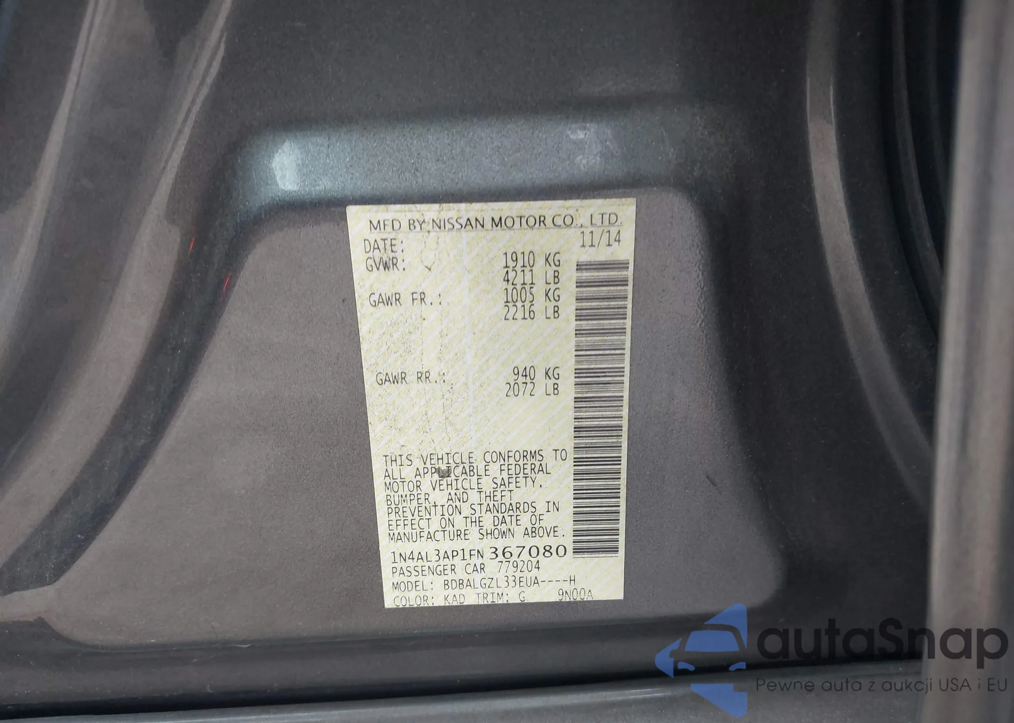 VIN: 1N4AL3AP1FN367080