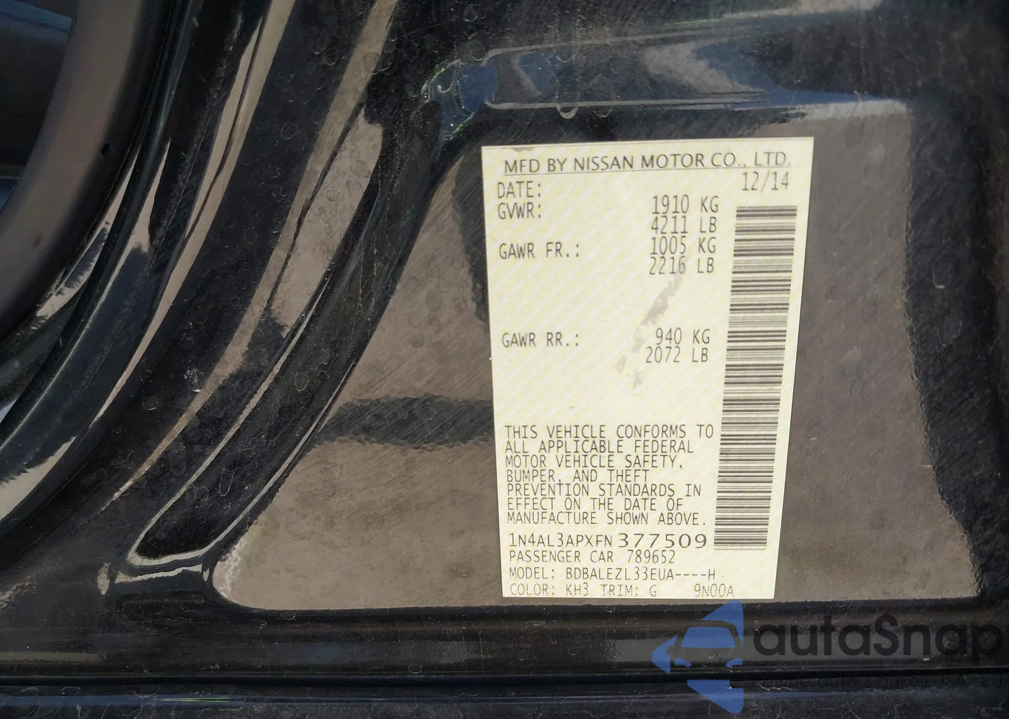 VIN: 1N4AL3APXFN377509