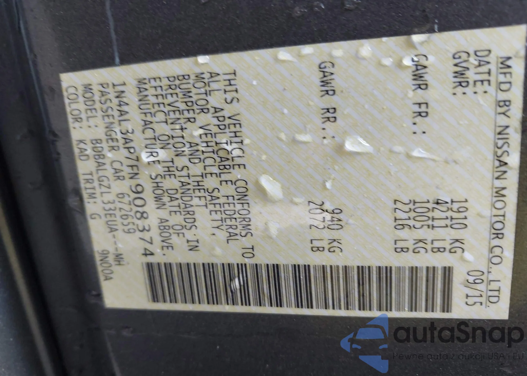 VIN: 1N4AL3AP7FN908374