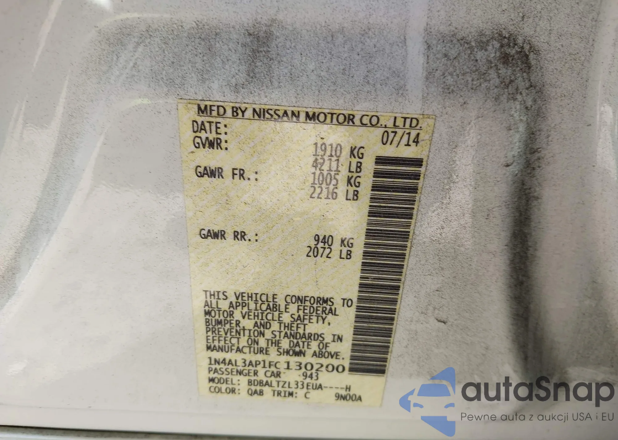 VIN: 1N4AL3AP1FC130200