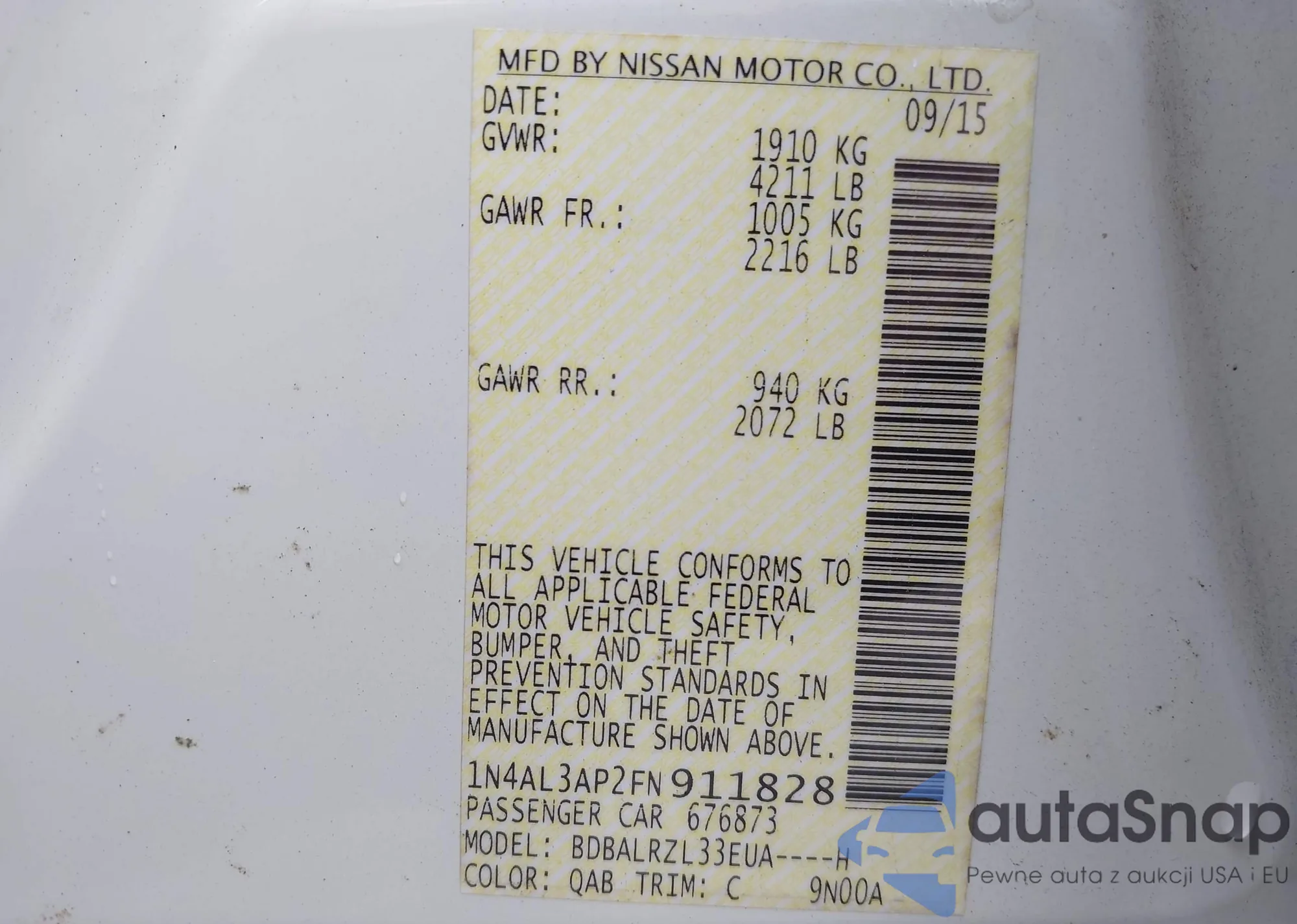 The car Nissan Altima 2015 (VIN 1N4AL3AP2FN911828) is sold by an unverified seller. We recommend checking the Carfax report and confirming registration possibilities before purchase.