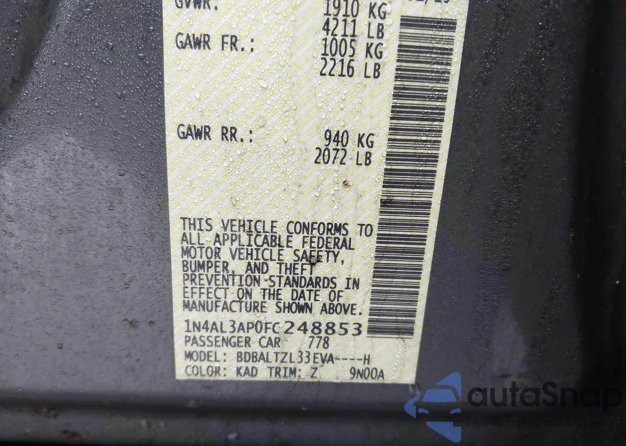 The car Nissan Altima 2015 (VIN 1N4AL3AP0FC248853) is sold by an unverified seller. We recommend checking the Carfax report and confirming registration possibilities before purchase.