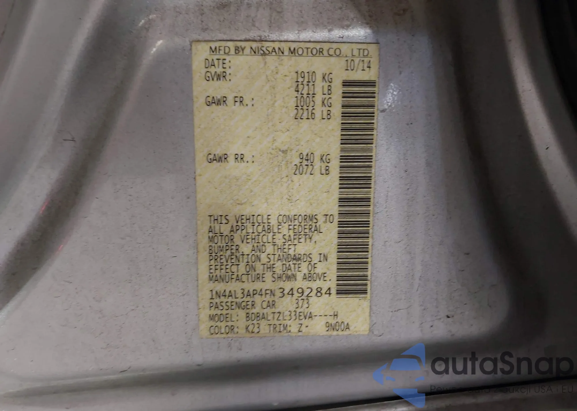 VIN: 1N4AL3AP4FN349284