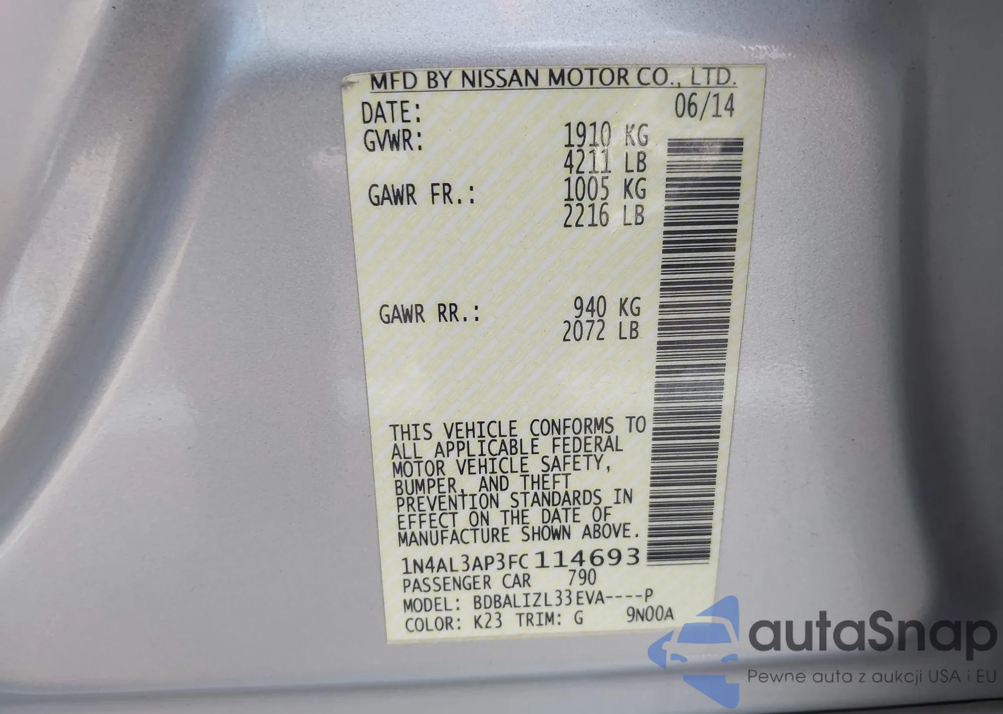 VIN: 1N4AL3AP3FC114693