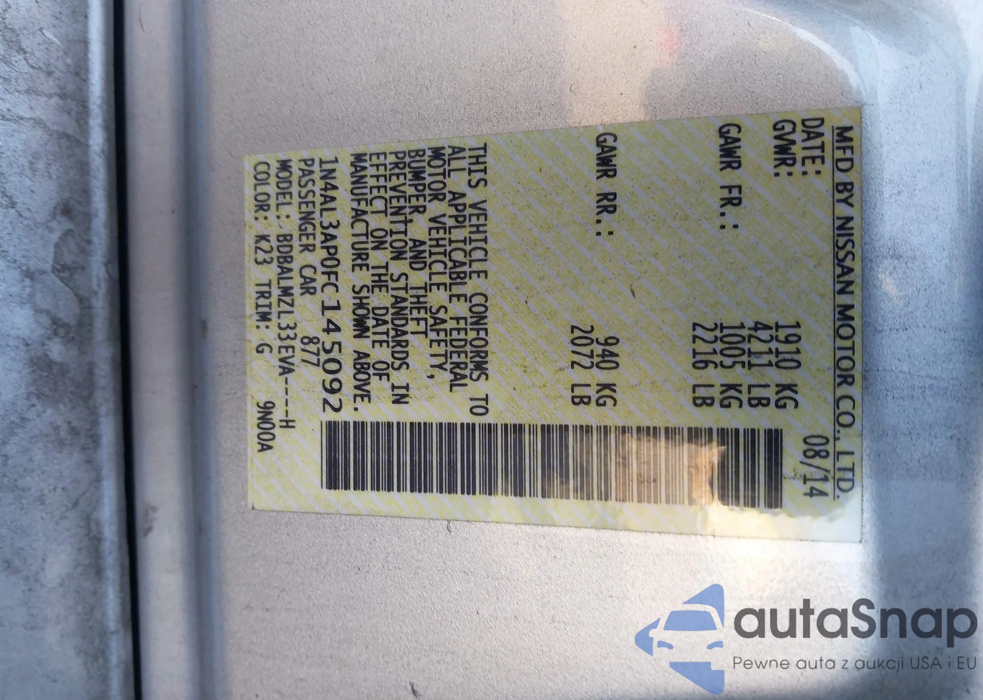 The car Nissan Altima 2015 (VIN 1N4AL3AP0FC145092) has not been auctioned before. The documents are clean, and the mileage matches or is below the market average. Sold by an insurance company – we recommend purchase. Delivery to the port will take approx. 6–8 weeks.