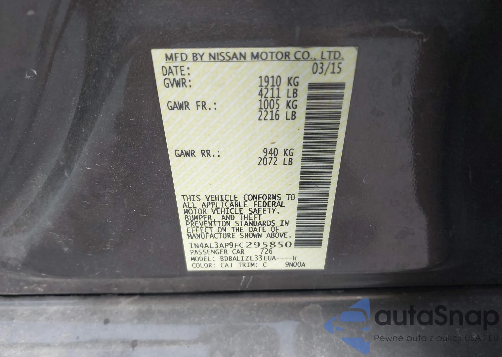 VIN: 1N4AL3AP9FC295850