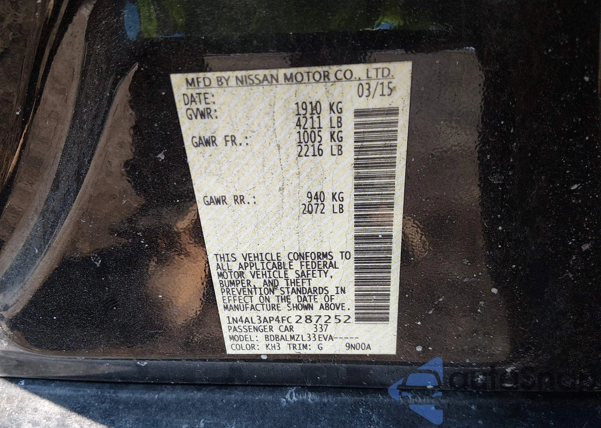 The car Nissan Altima 2015 (VIN 1N4AL3AP4FC287252) has not been auctioned before. The documents are clean, and the mileage matches or is below the market average. Sold by an insurance company – we recommend purchase. Delivery to the port will take approx. 6–8 weeks.