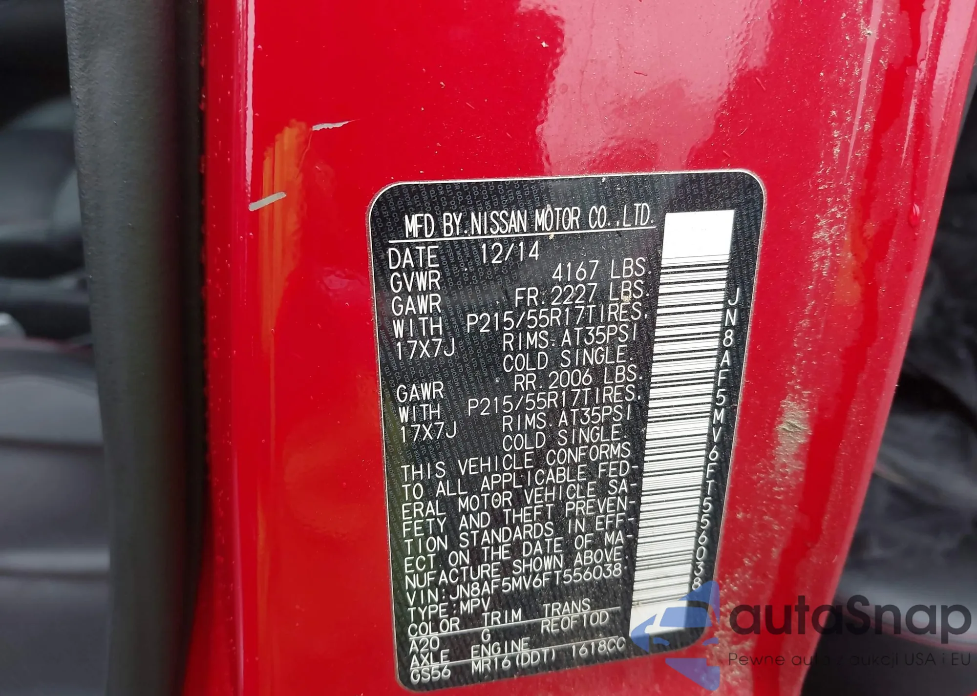 VIN: JN8AF5MV6FT556038