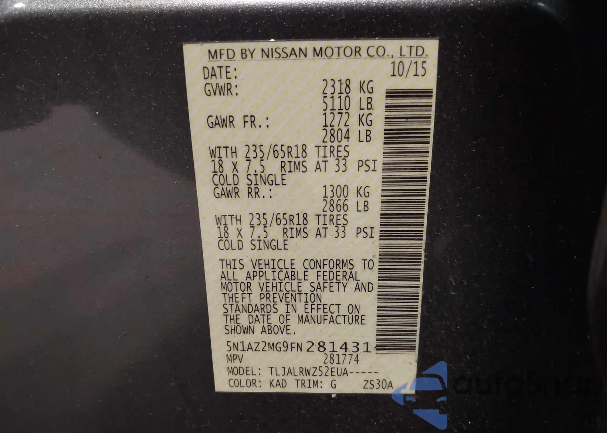 The car Nissan Murano 2015 (VIN 5N1AZ2MG9FN281431) has not been auctioned before. The documents are clean, and the mileage matches or is below the market average. Sold by an insurance company – we recommend purchase. Delivery to the port will take approx. 6–8 weeks.