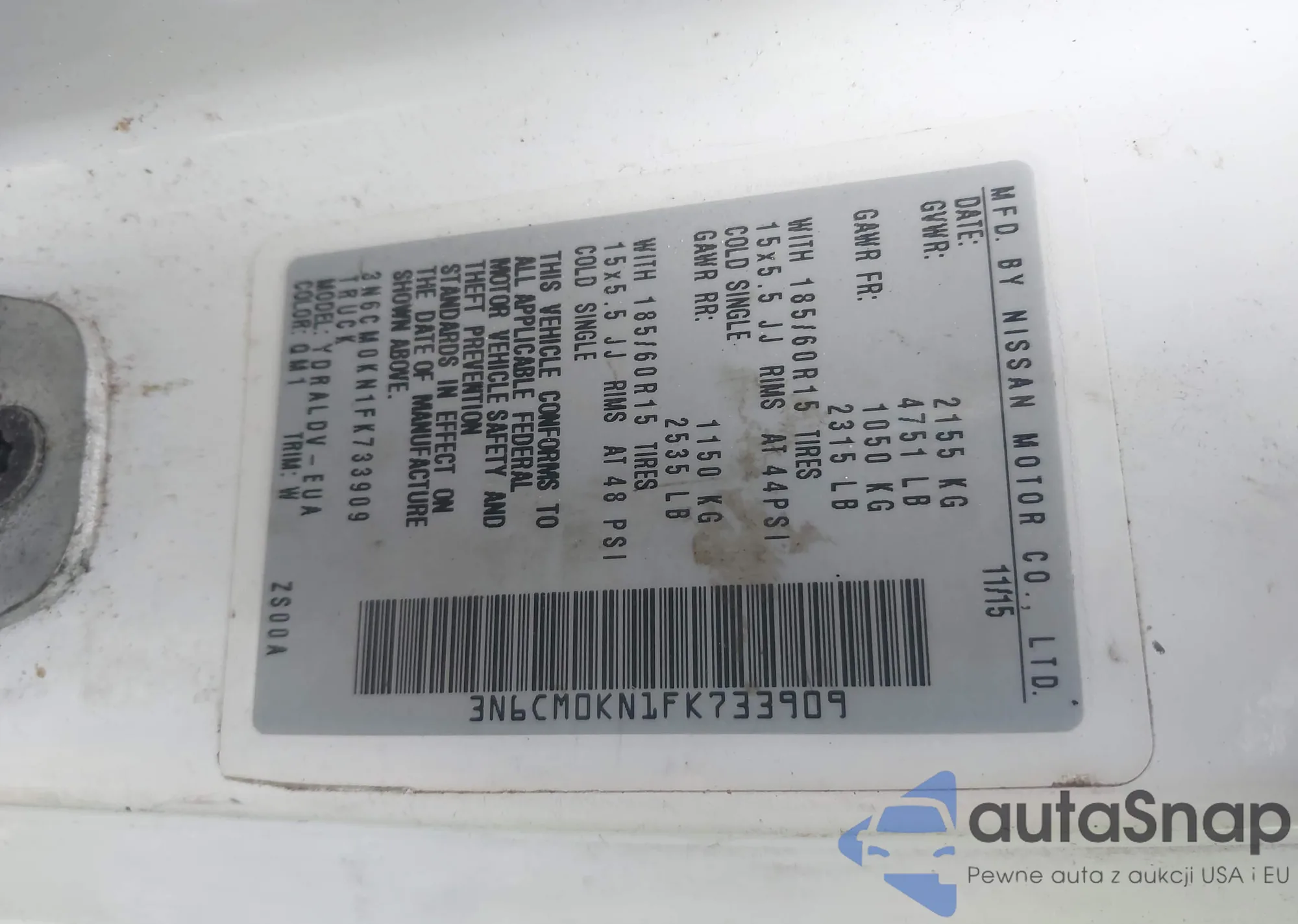 • VIN: 3N6CM0KN1FK733909