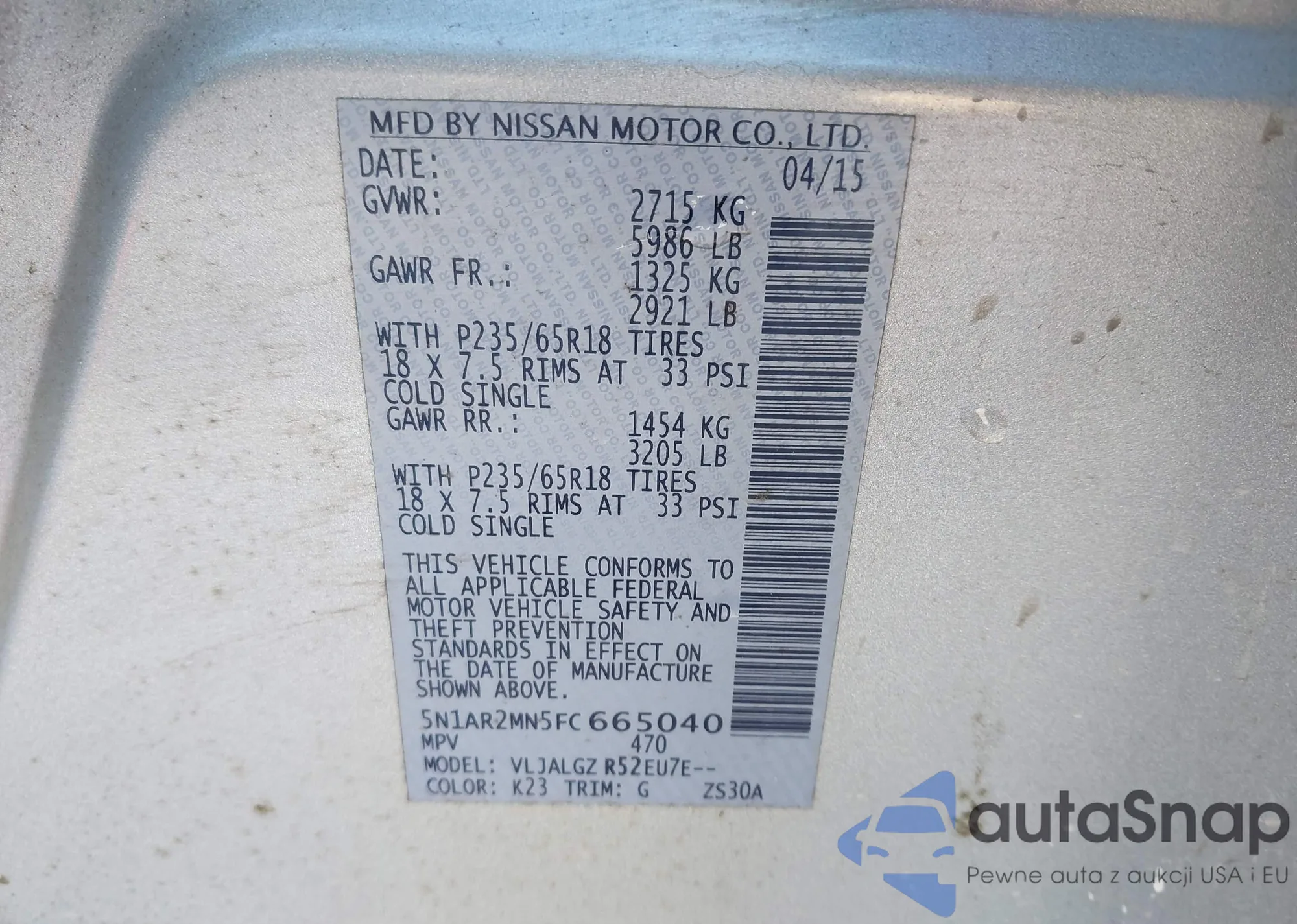 VIN: 5N1AR2MN5FC665040