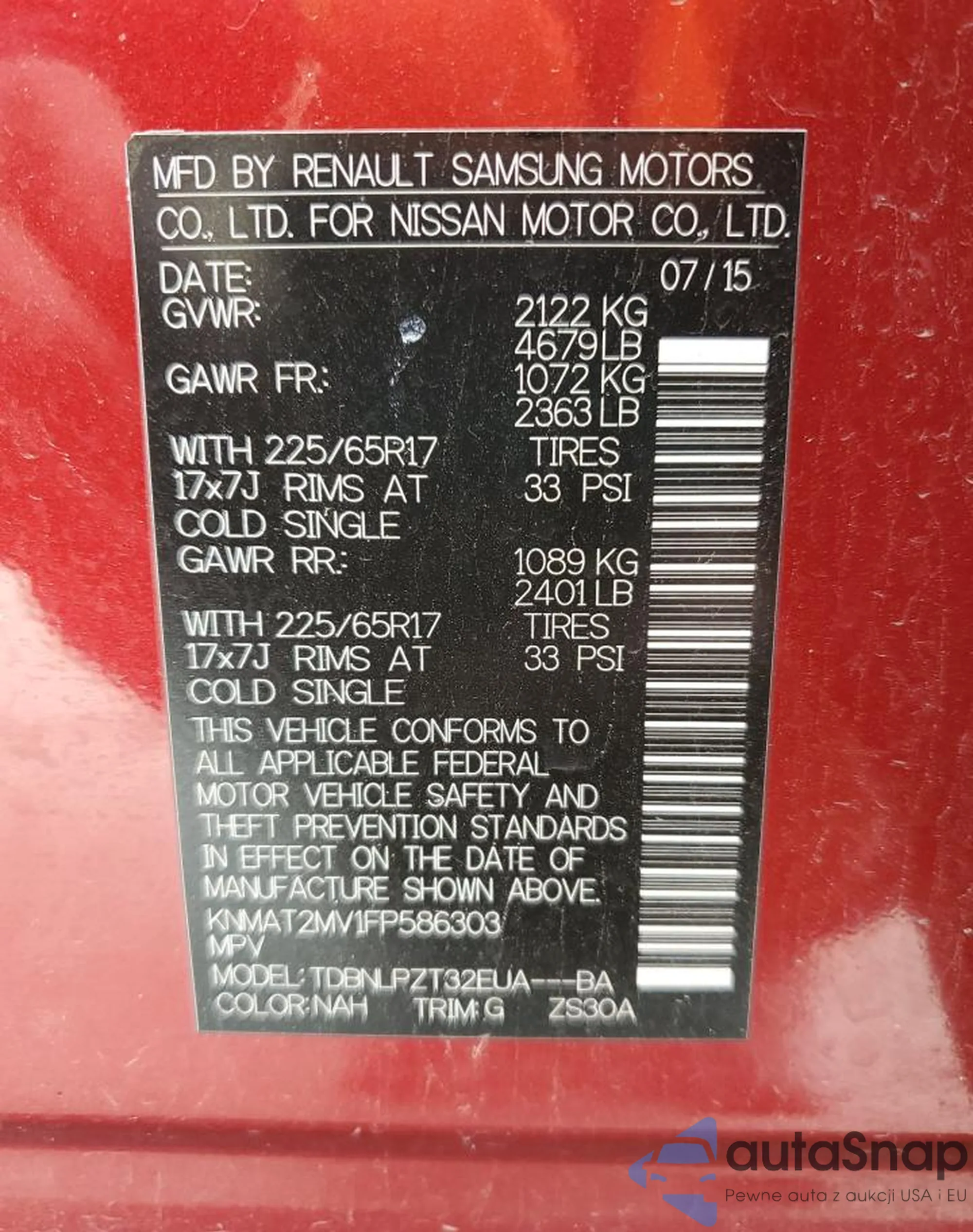 Nissan Rogue 2015 – Vehicle History (Sold at COPART)