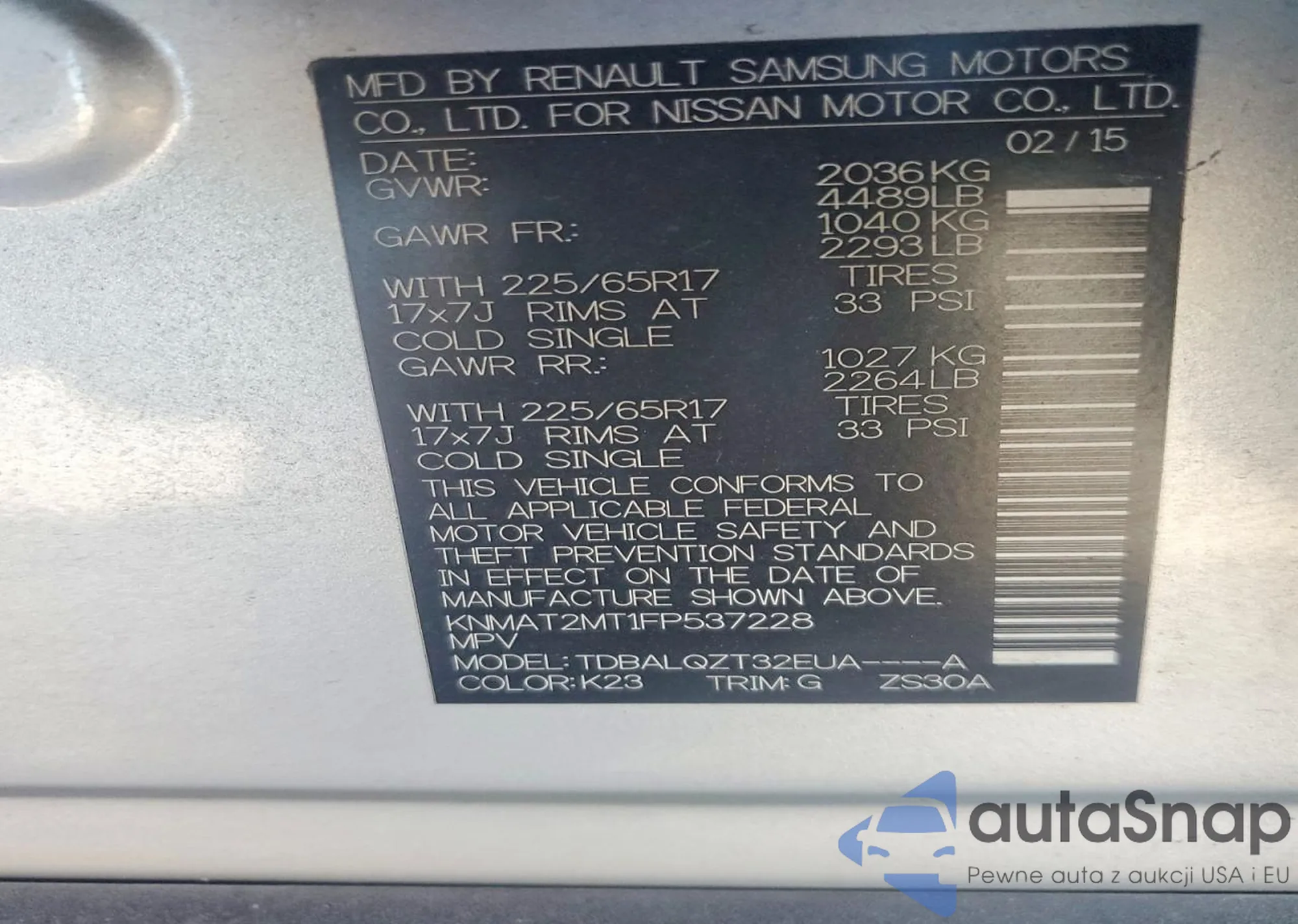 The car Nissan Rogue 2015 (VIN KNMAT2MT1FP537228) has not been auctioned before. The documents are clean, and the mileage matches or is below the market average. Sold by an insurance company – we recommend purchase. Delivery to the port will take approx. 6–8 weeks.