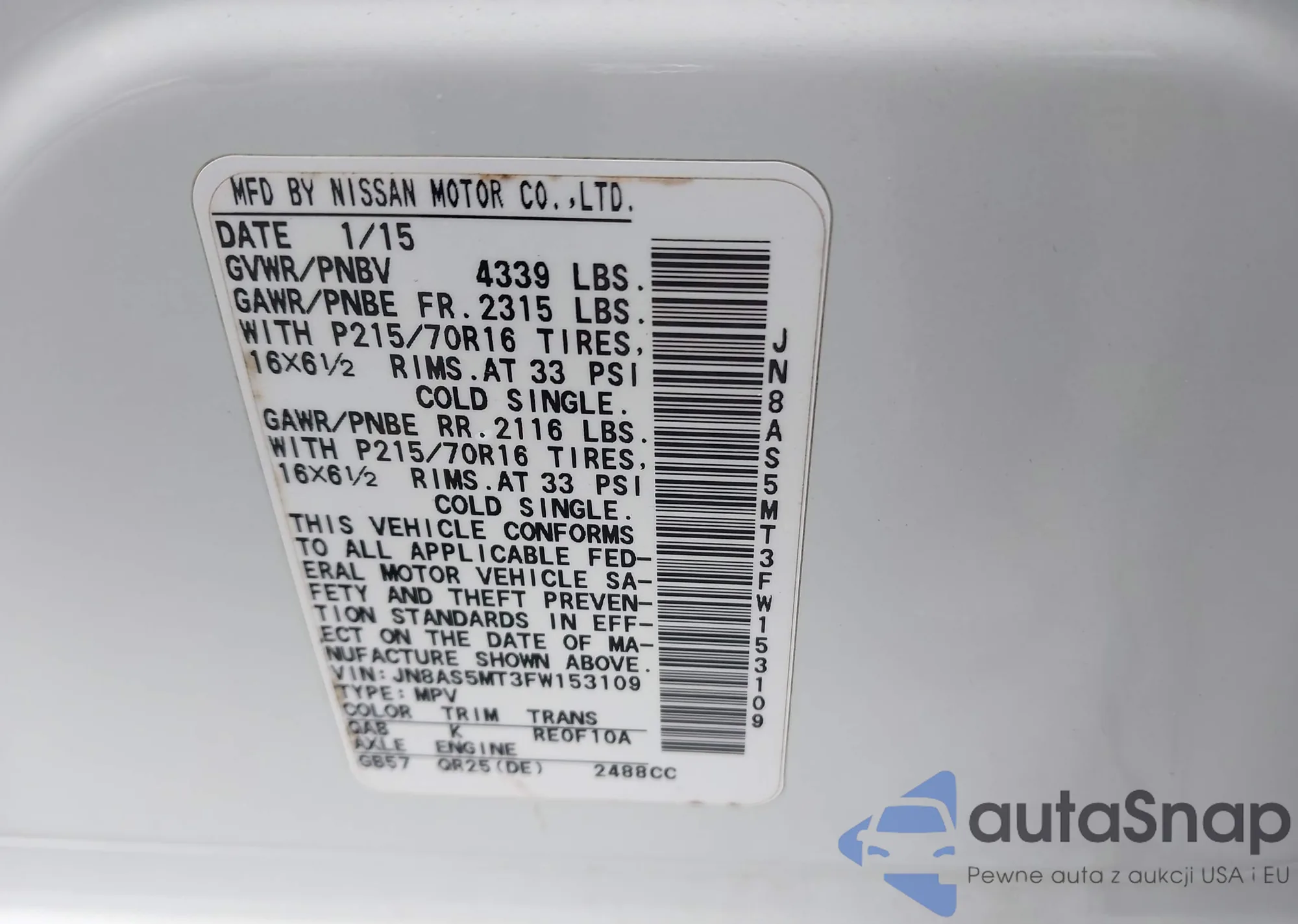 The car Nissan Rogue 2015 (VIN JN8AS5MT3FW153109) is sold by an unverified seller. We recommend checking the Carfax report and confirming registration possibilities before purchase.