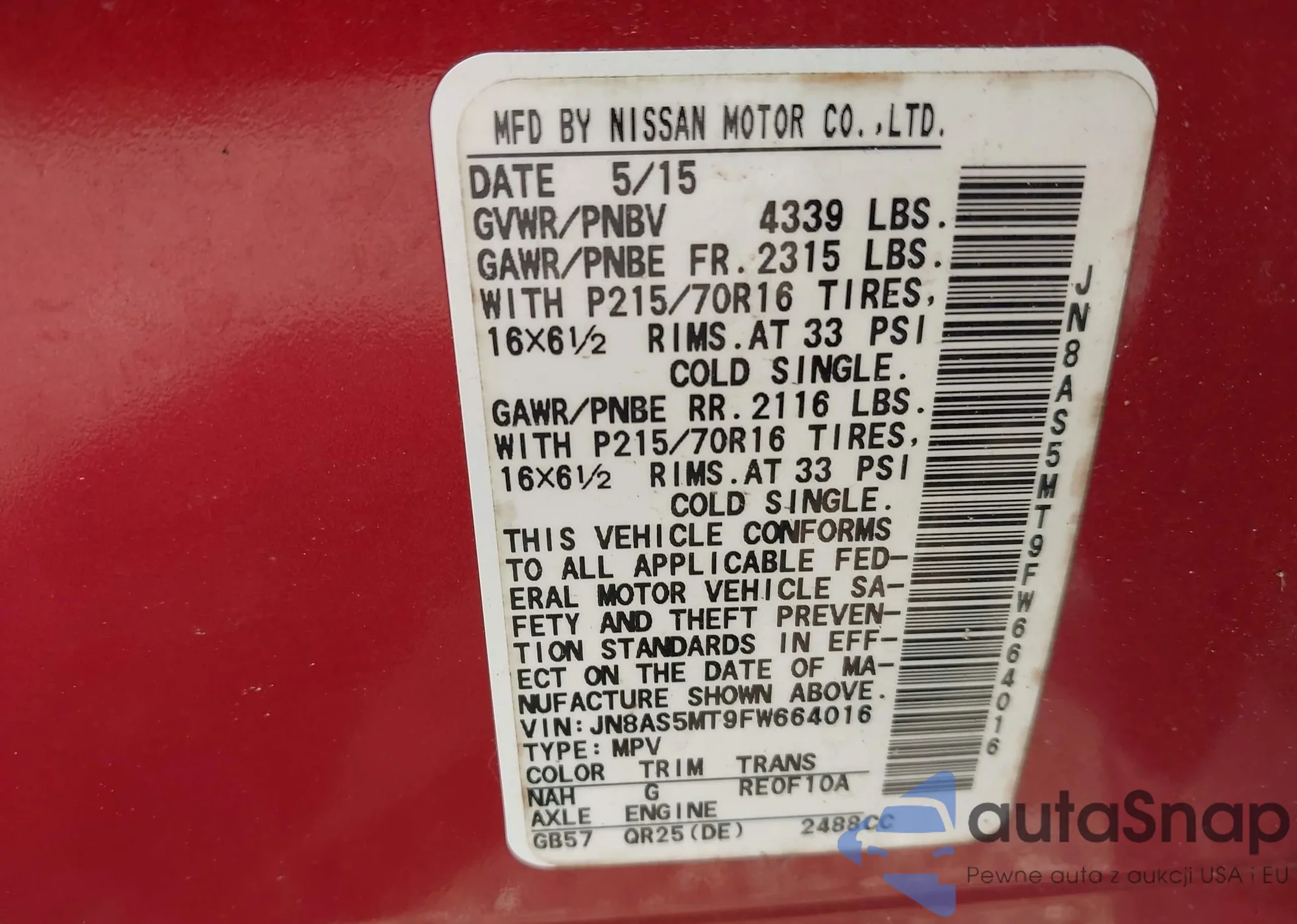 VIN: JN8AS5MT9FW664016