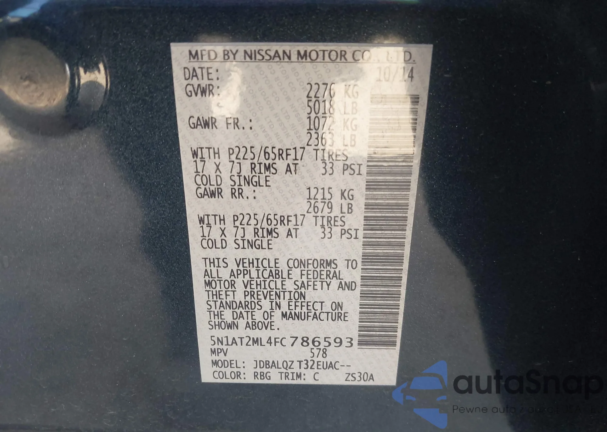 VIN: 5N1AT2ML4FC786593