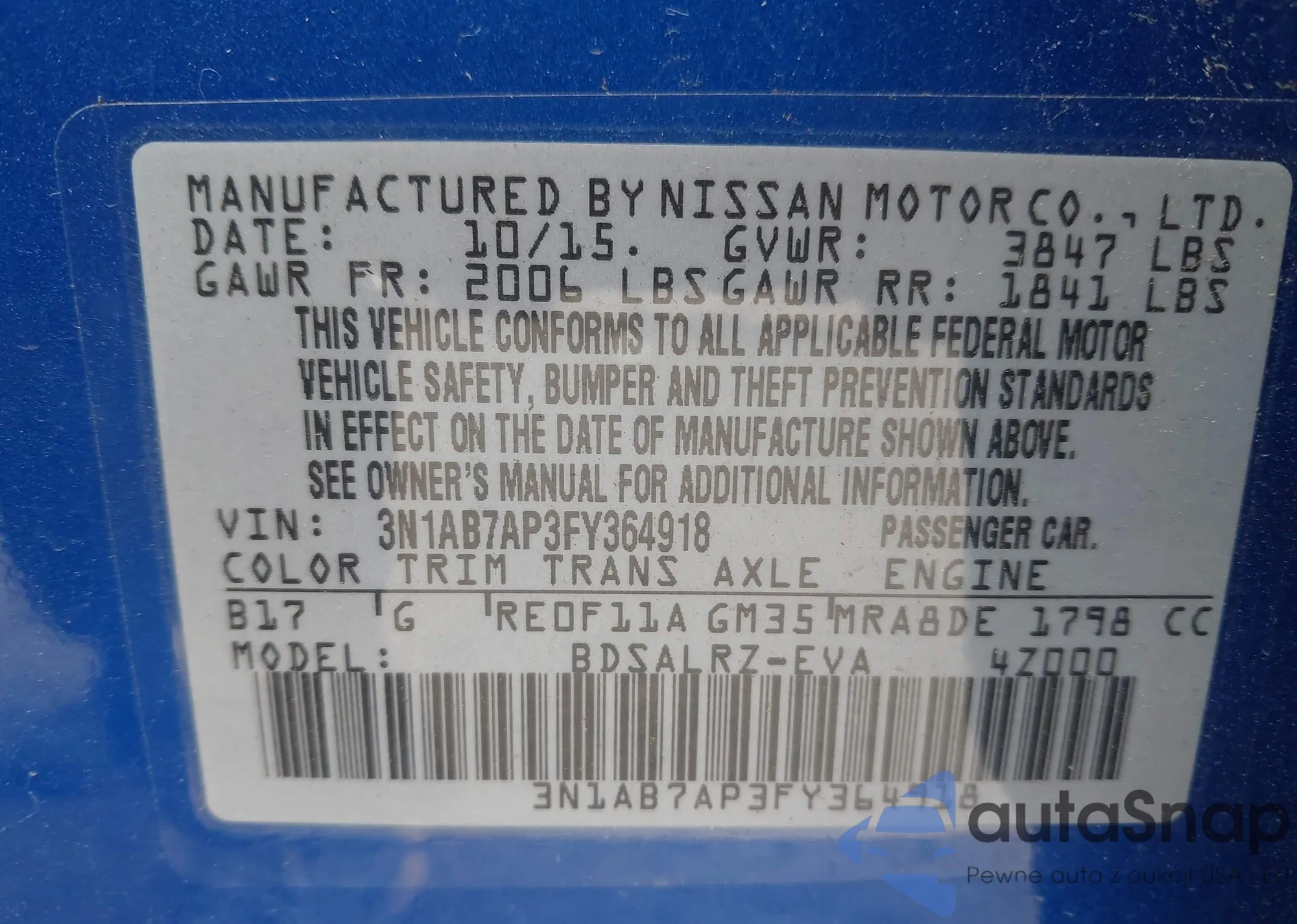 VIN: 3N1AB7AP3FY364918