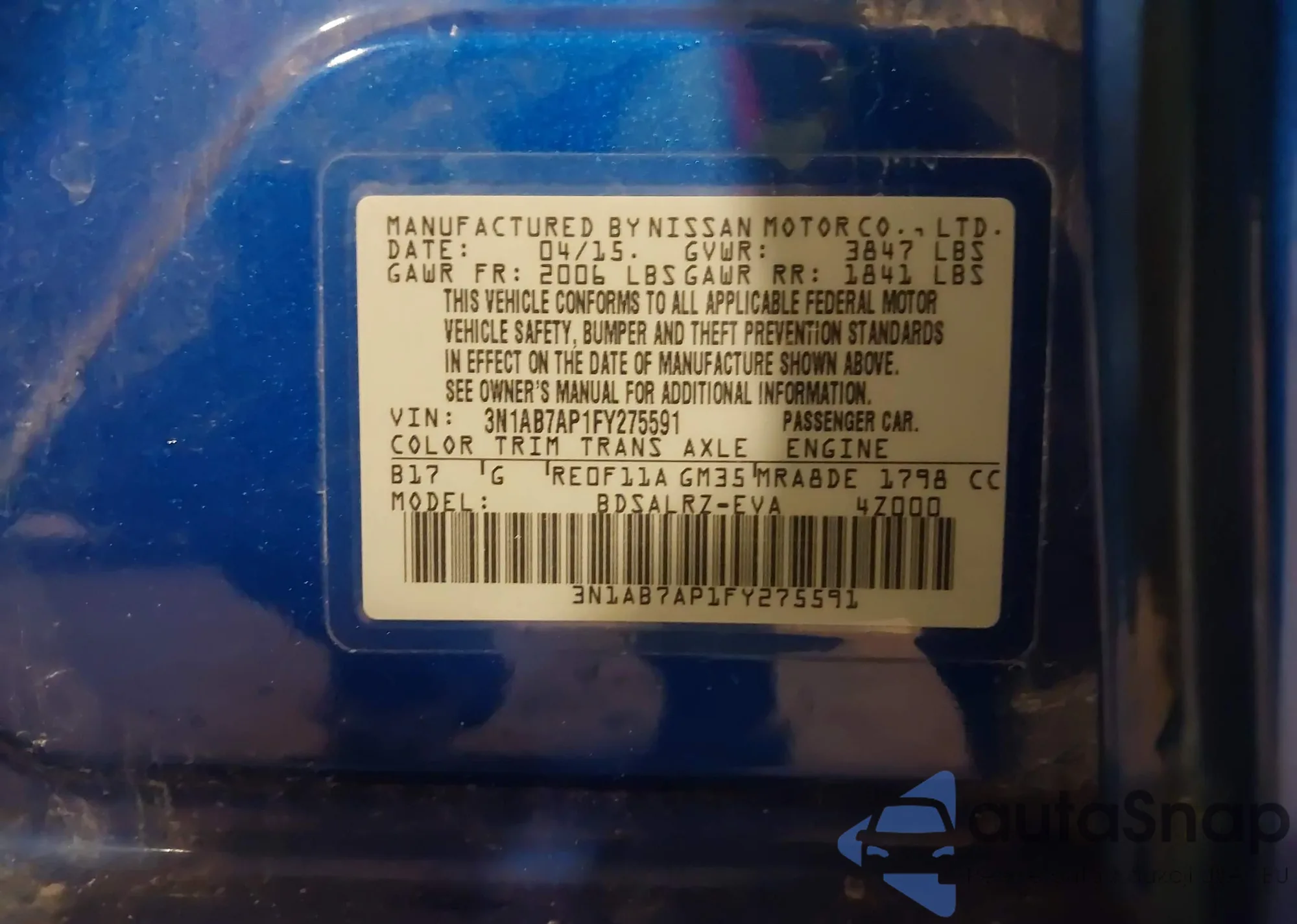 VIN: 3N1AB7AP1FY275591