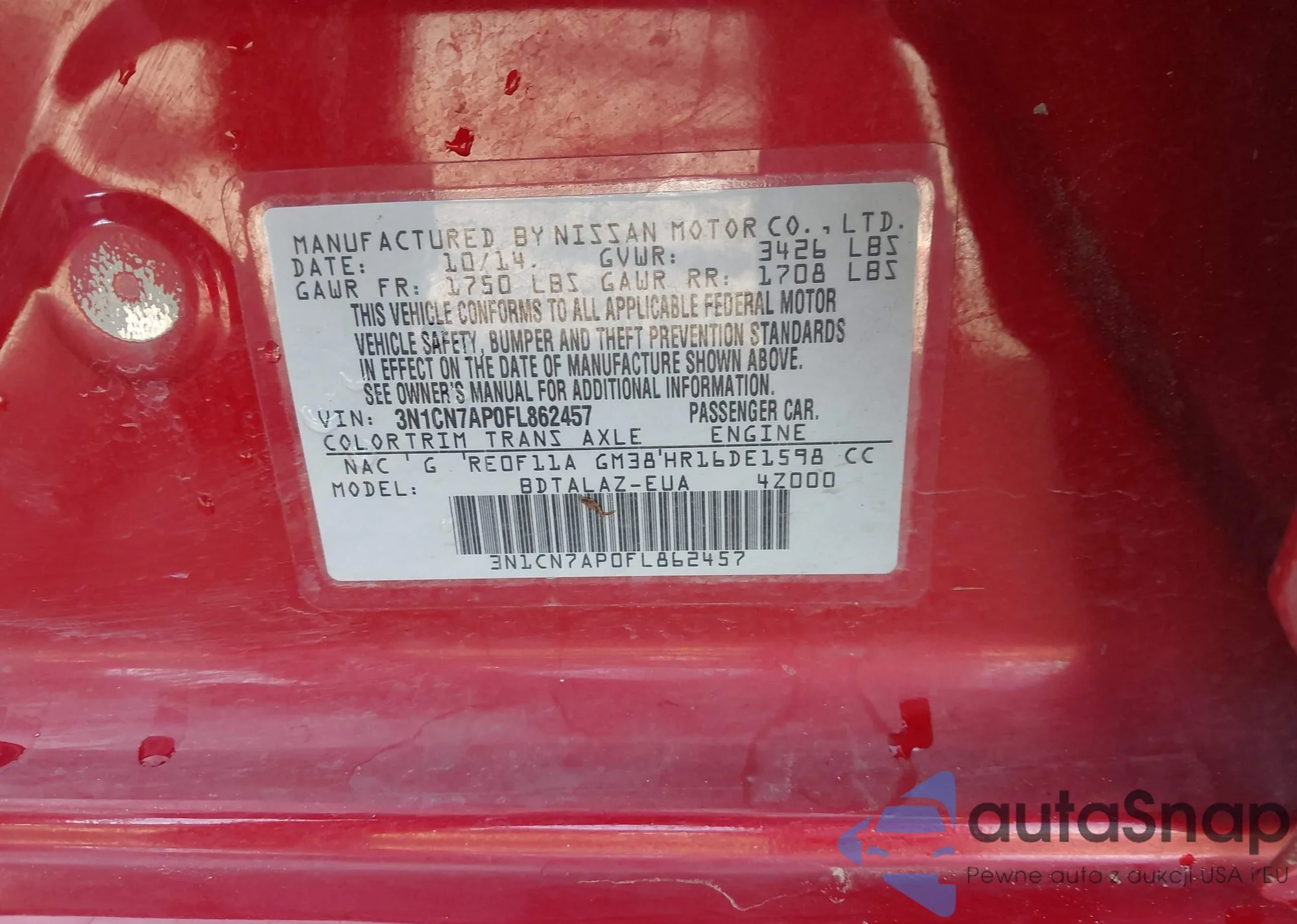 VIN: 3N1CN7AP0FL862457