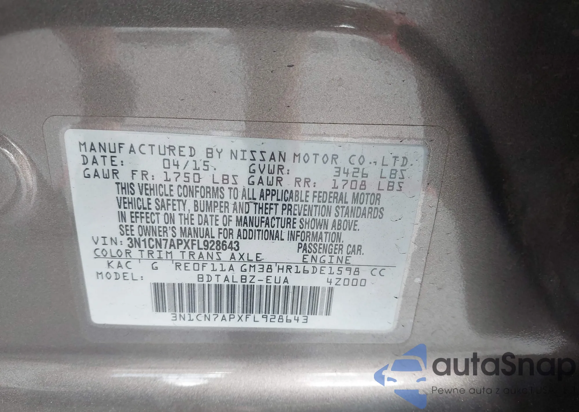 VIN: 3N1CN7APXFL928643