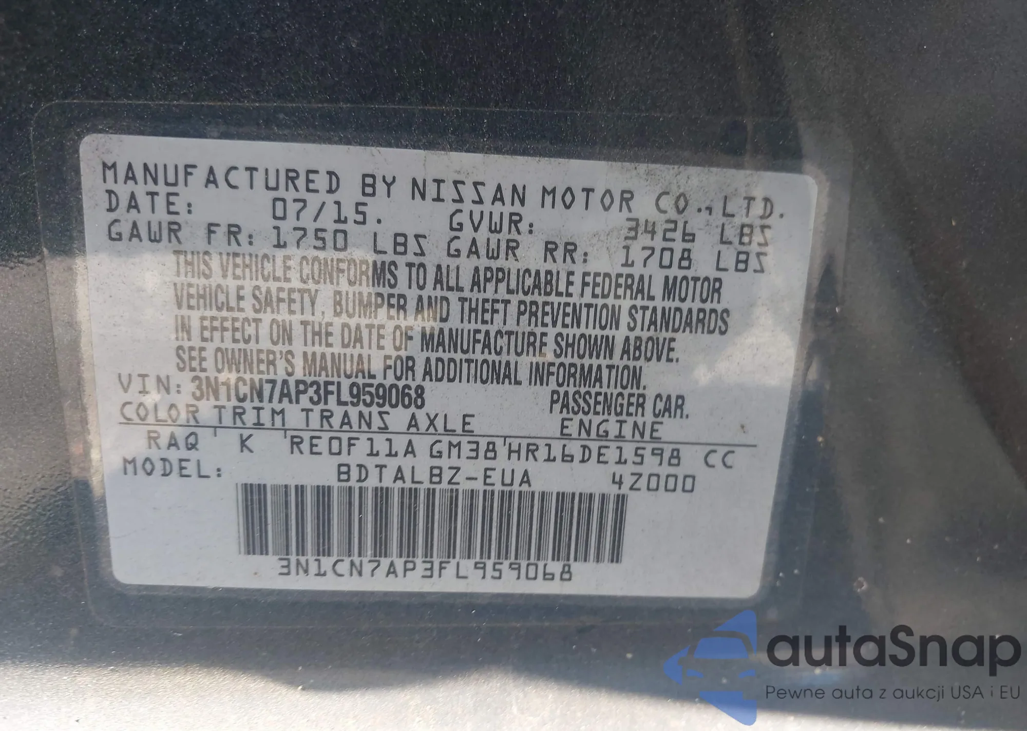 VIN: 3N1CN7AP3FL959068