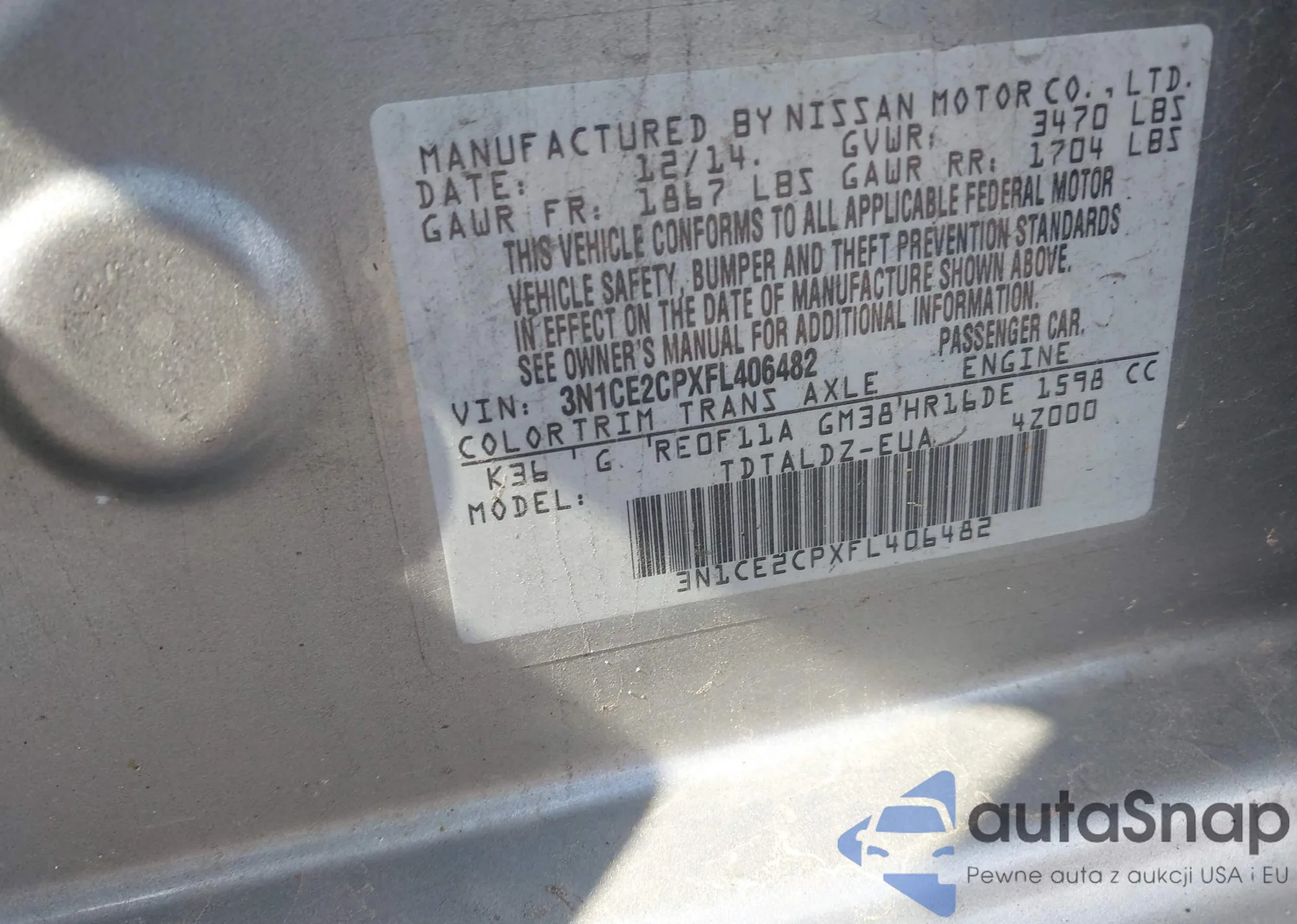 The car Nissan Versa 2015 (VIN 3N1CE2CPXFL406482) is sold by an unverified seller. We recommend checking the Carfax report and confirming registration possibilities before purchase.