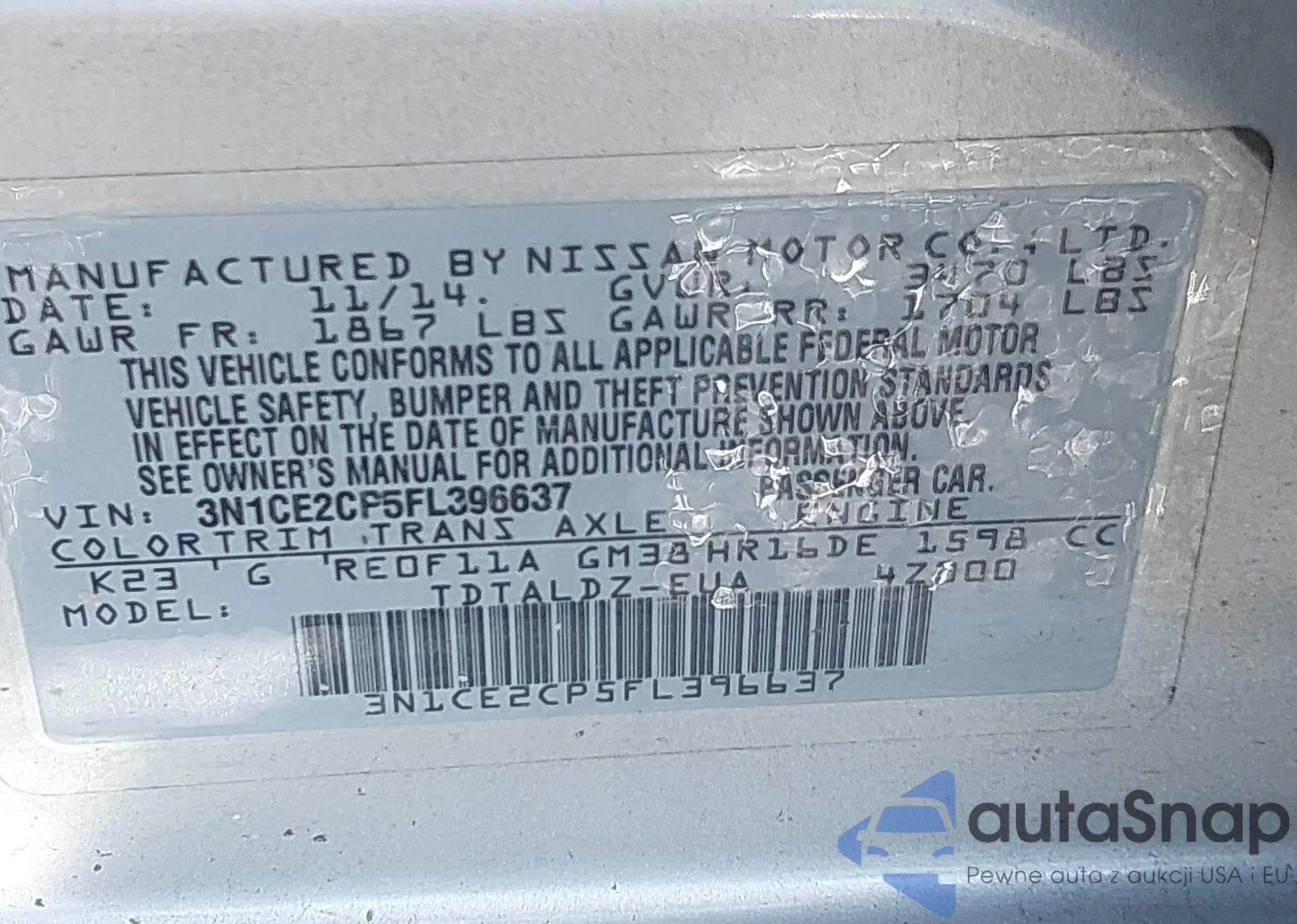 VIN: 3N1CE2CP5FL396637