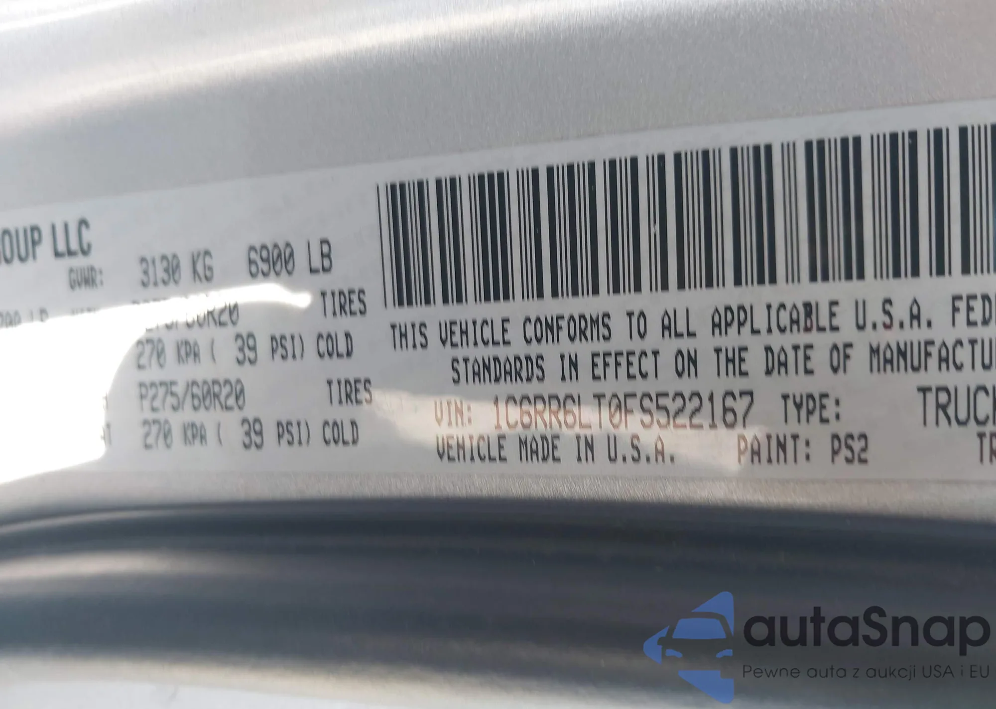 VIN: 1C6RR6LT0FS522167