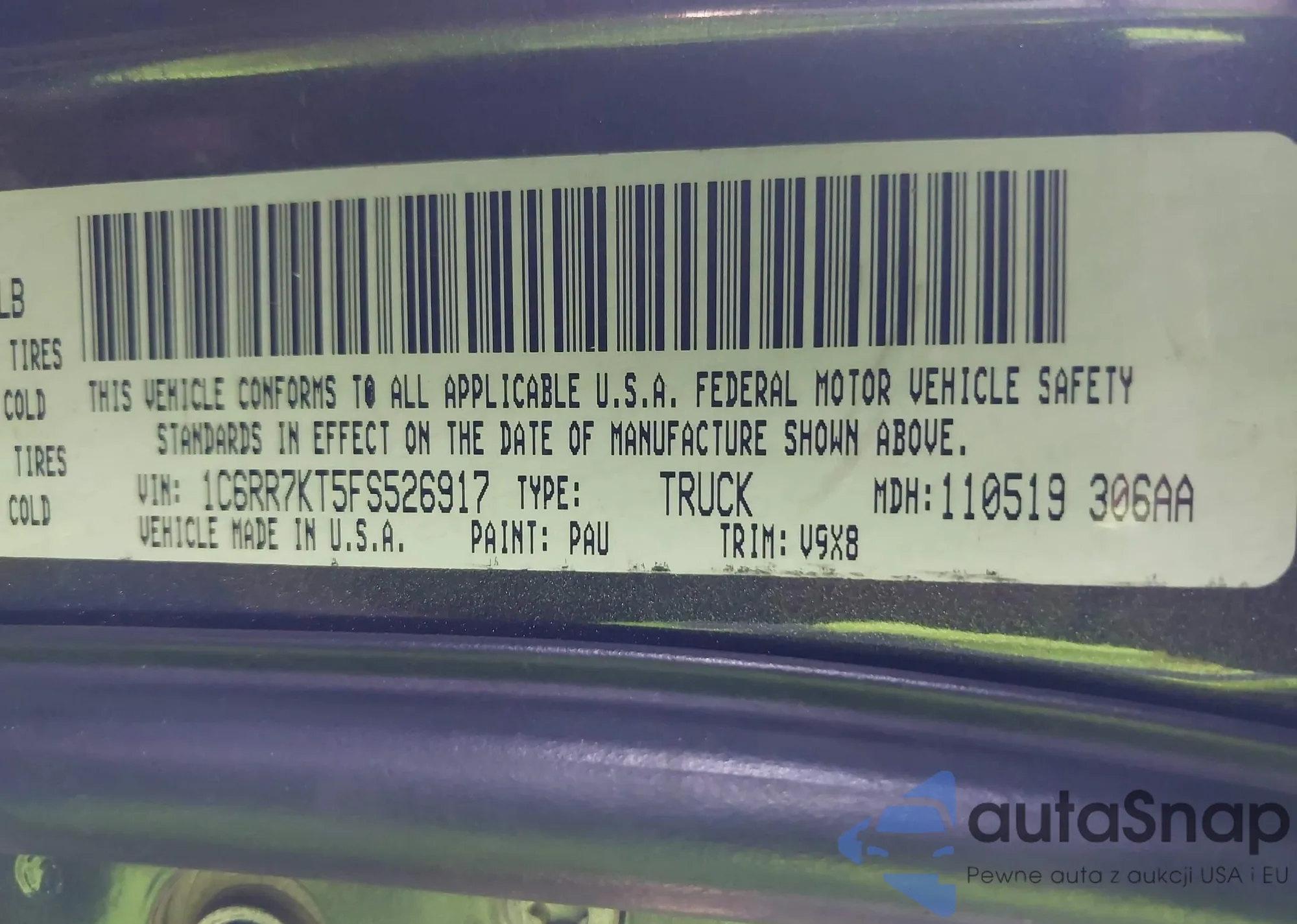• VIN: 1C6RR7KT5FS526917