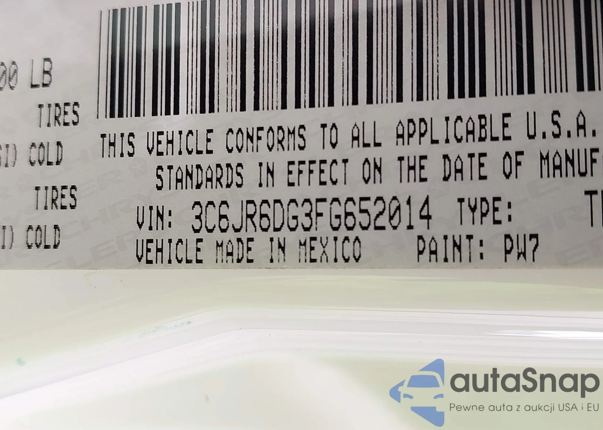 VIN: 3C6JR6DG3FG652014
