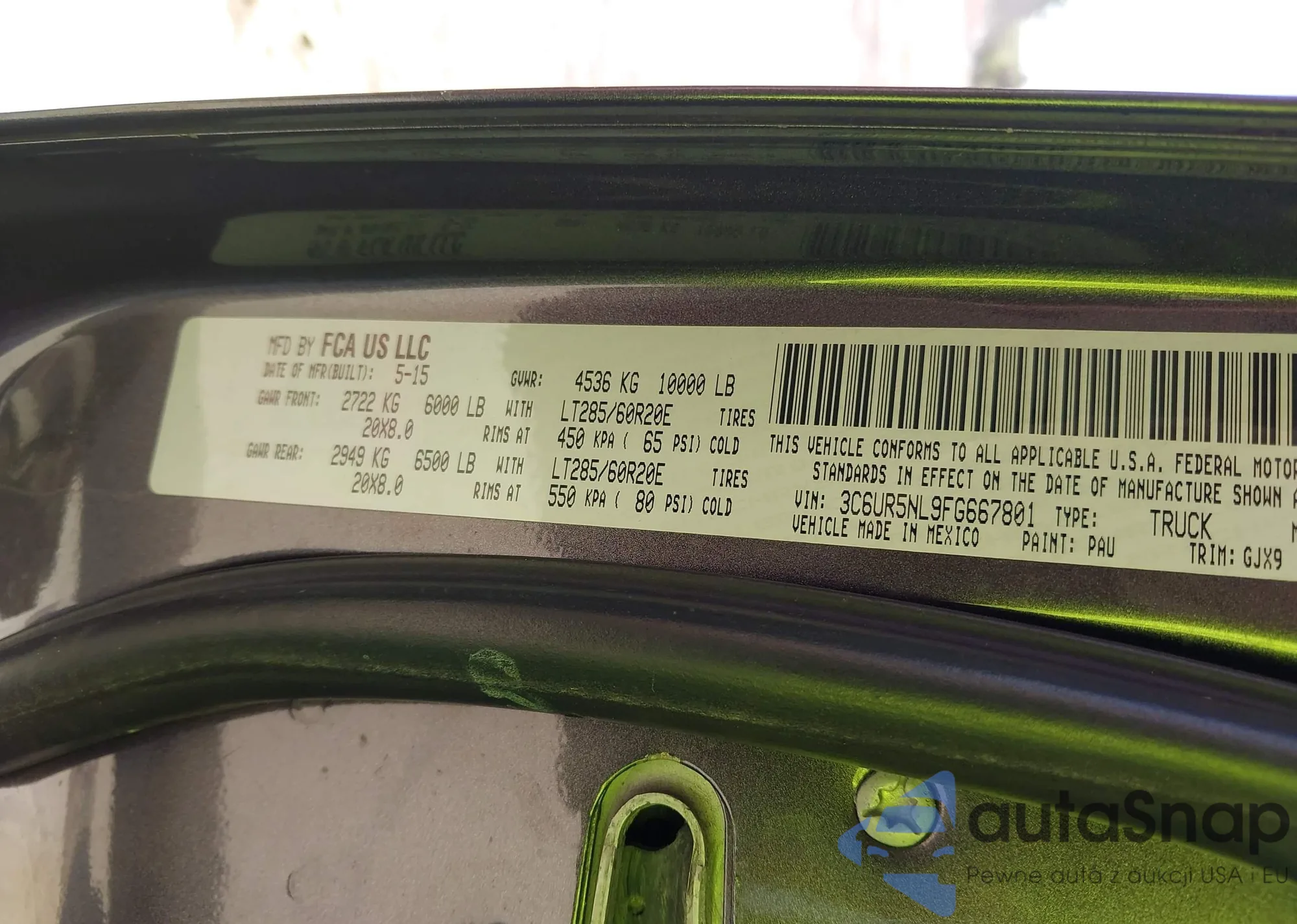 The car RAM 2500 2015 (VIN 3C6UR5NL9FG667801) has already been auctioned 0 times or is sold by an unverified seller. We recommend checking the Carfax report and confirming registration possibilities before purchase.