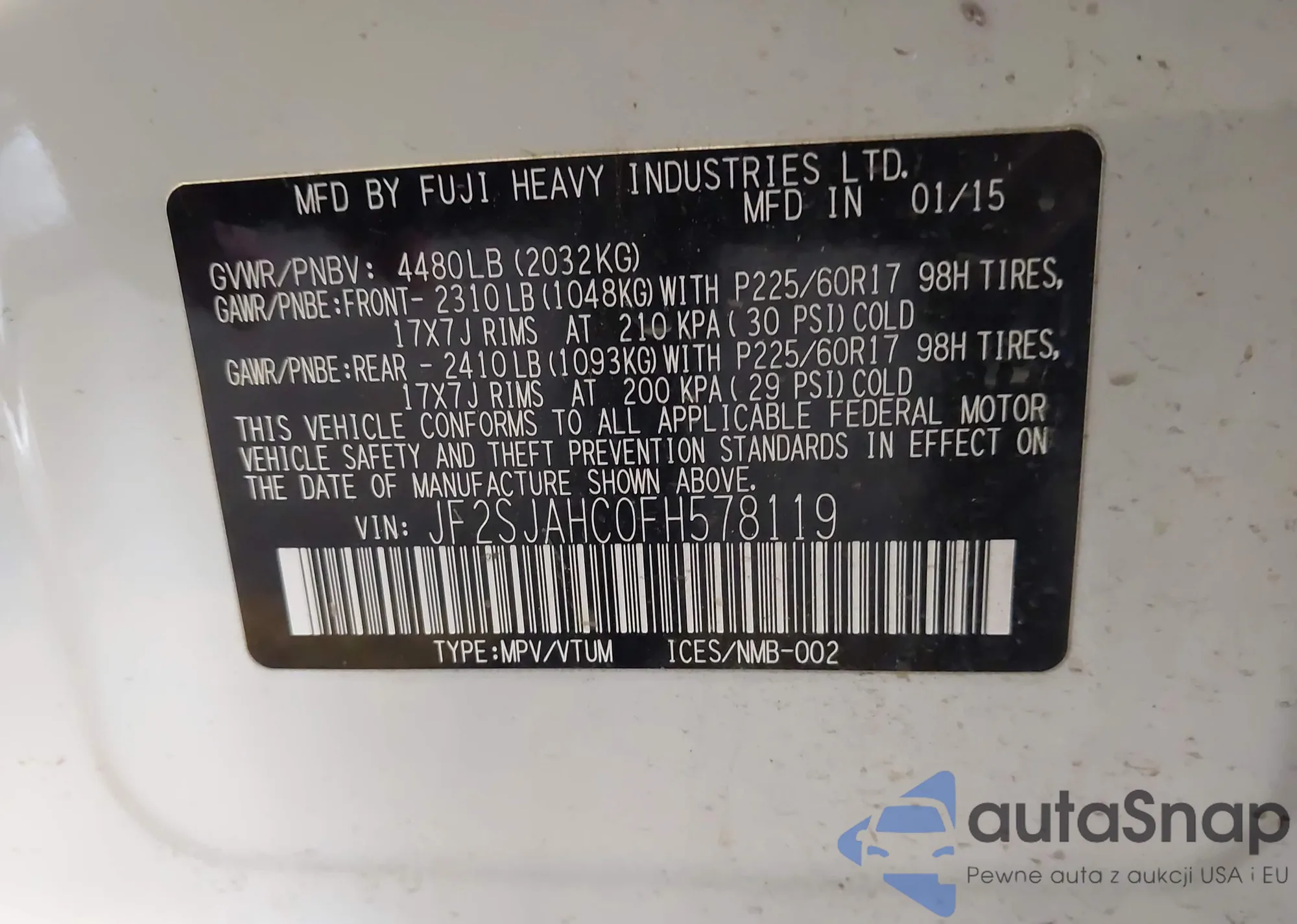VIN: JF2SJAHC0FH578119