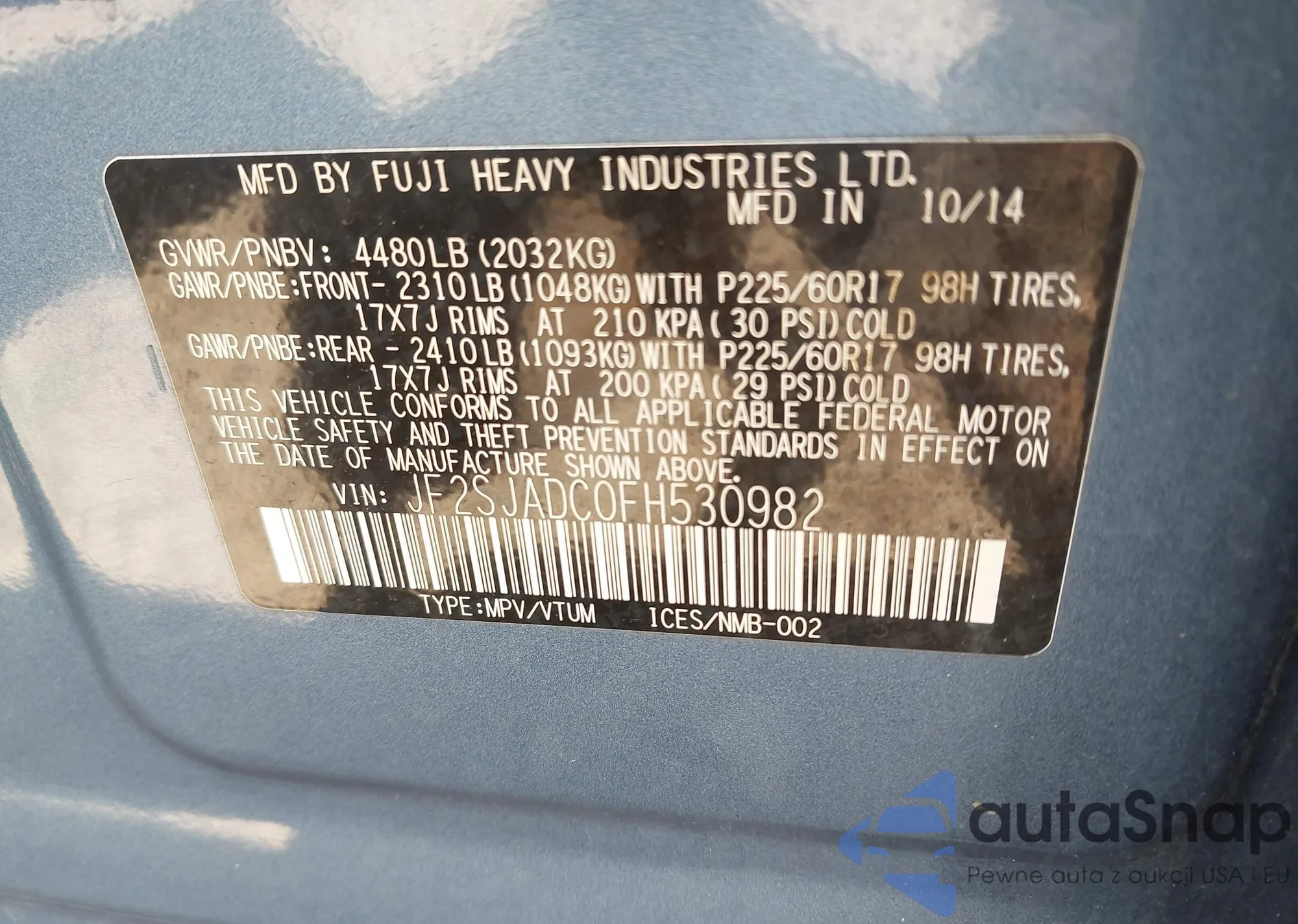 VIN: JF2SJADC0FH530982