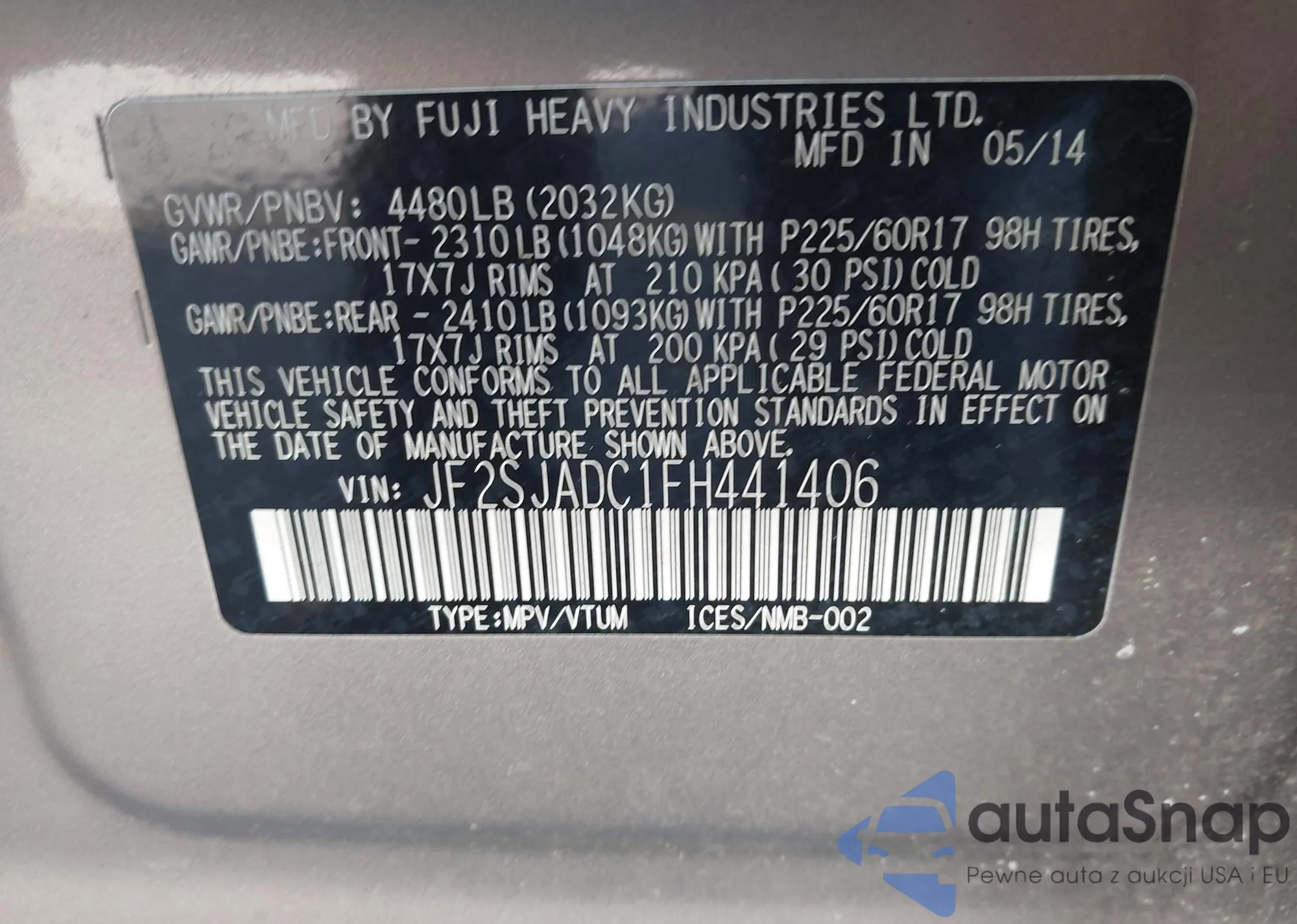 VIN: JF2SJADC1FH441406
