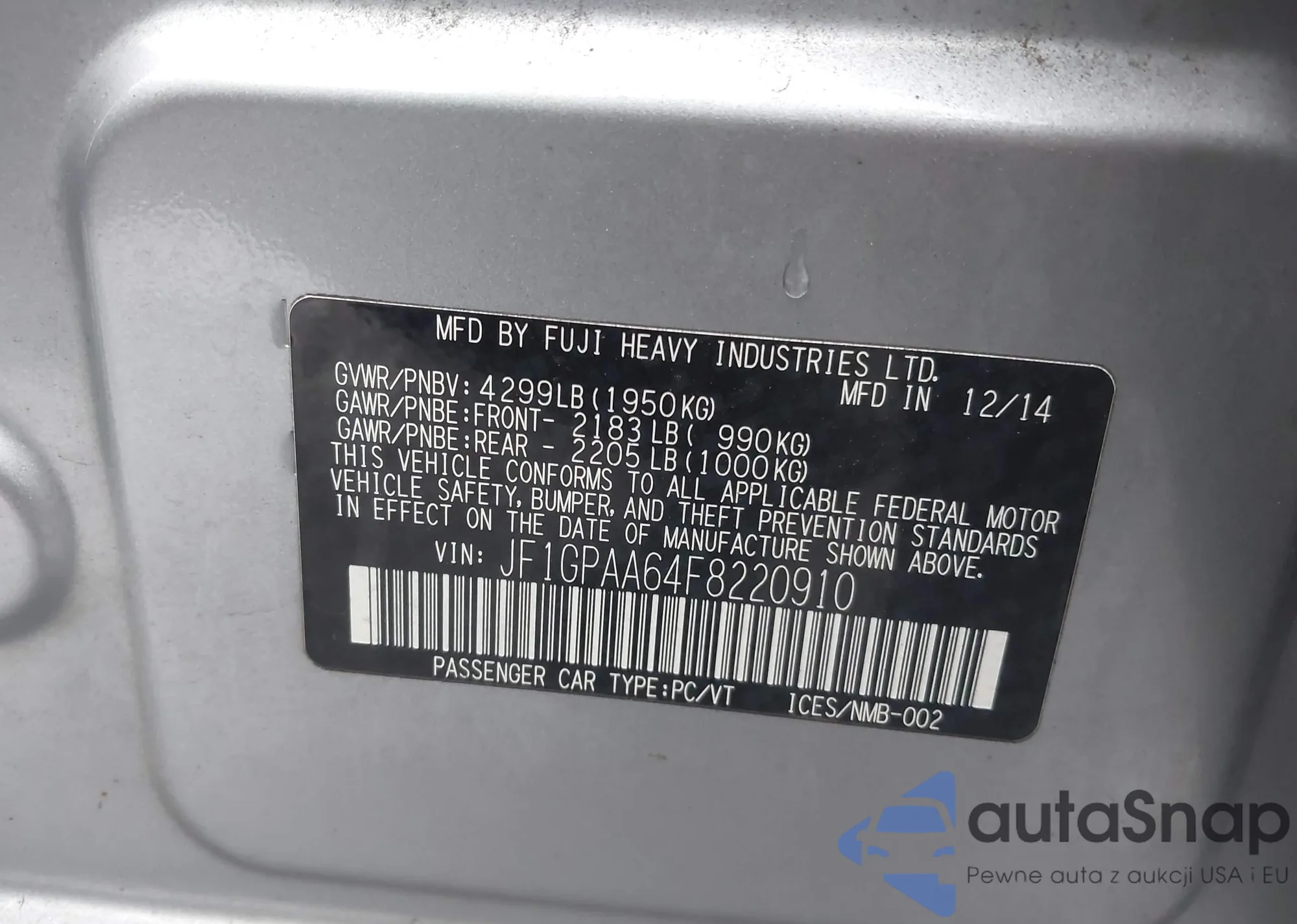 VIN: JF1GPAA64F8220910