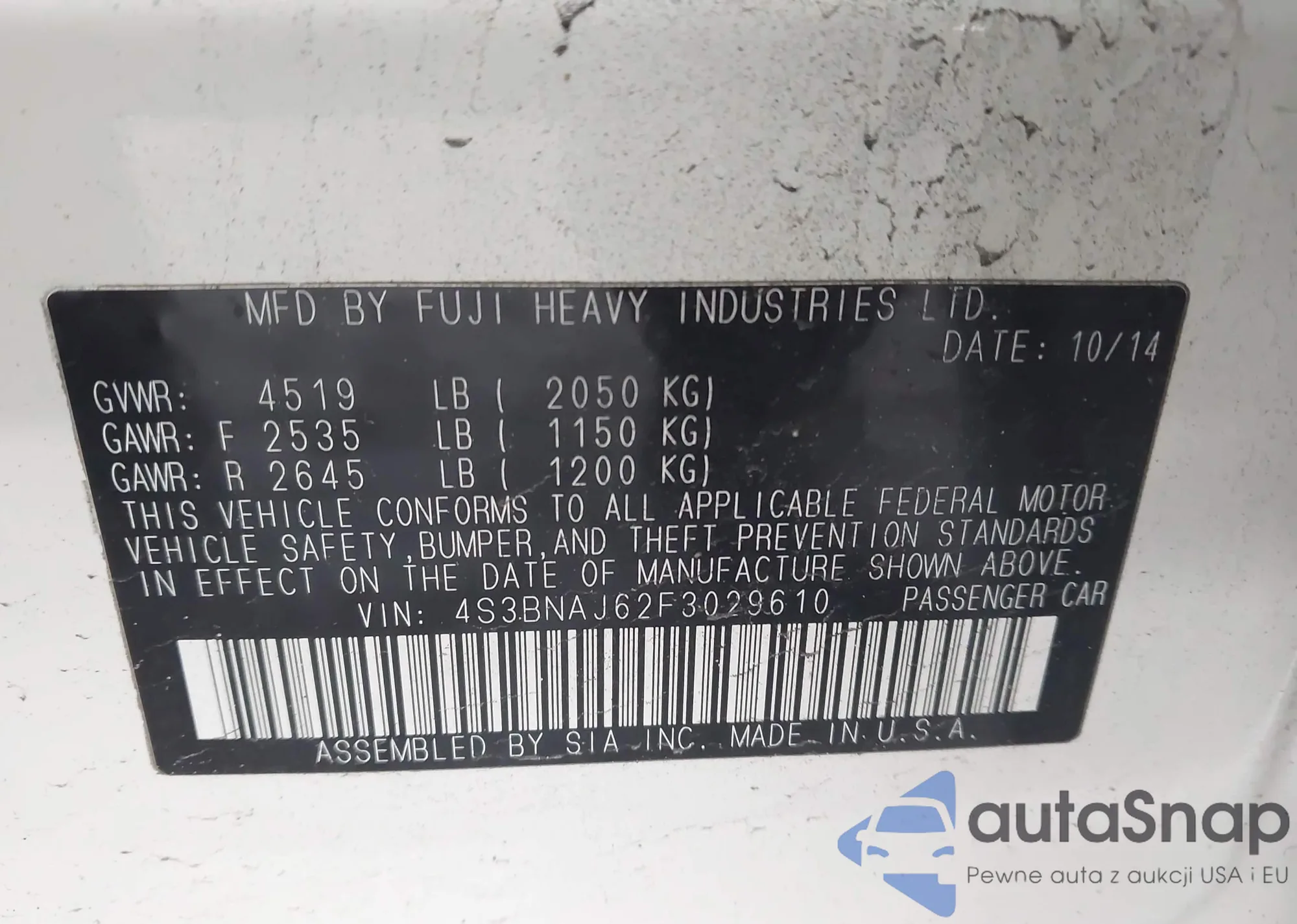 VIN: 4S3BNAJ62F3029610